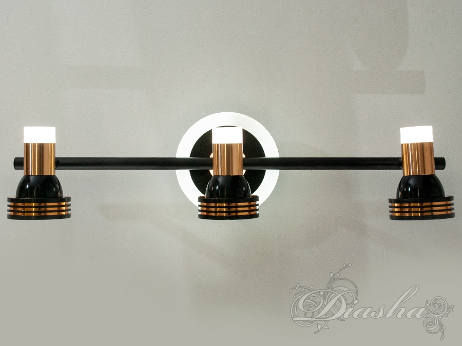 Настінний LED-світильник Diasha у поєднанні кольорів чорний, білий та золото створює візуально виразний акцент і водночас забезпечує корисне локальне освітлення. Модель розроблена як підсвічування для дзеркал і картин, тому її світловий потік спрямований на площину, підкреслюючи текстури та контури без зайвих відблисків. Вбудовані світлодіоди споживають лише 13 Вт, що зазвичай достатньо для комфортного підсвічування зони над консольною тумбою, над настінним дзеркалом або полотном.