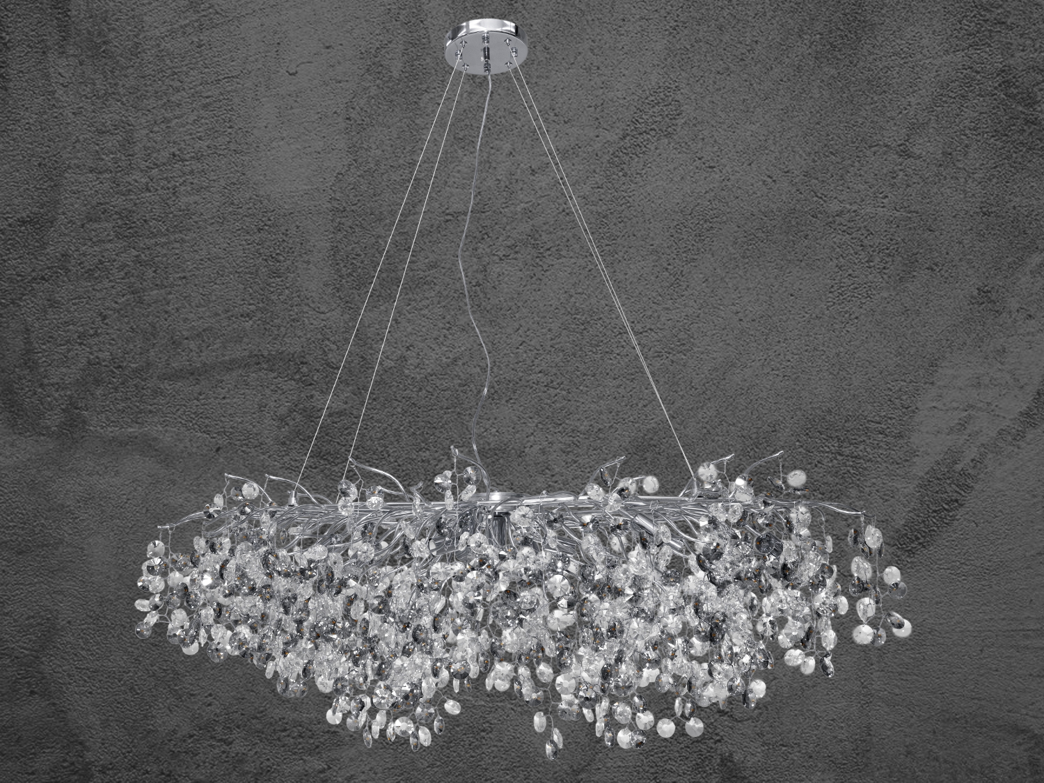 Ексклюзивна овальна кришталева люстра-підвіс для зали, колір хром