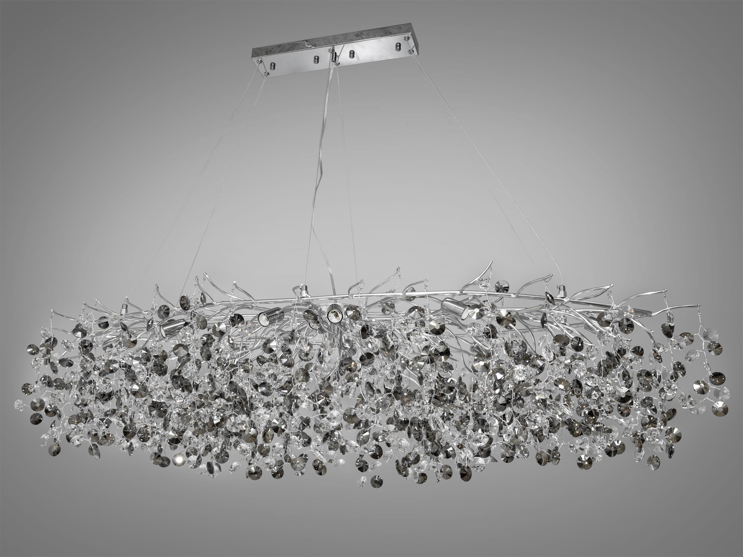 Приголомшлива кришталева люстра для холу витягнутої форми, колір хром