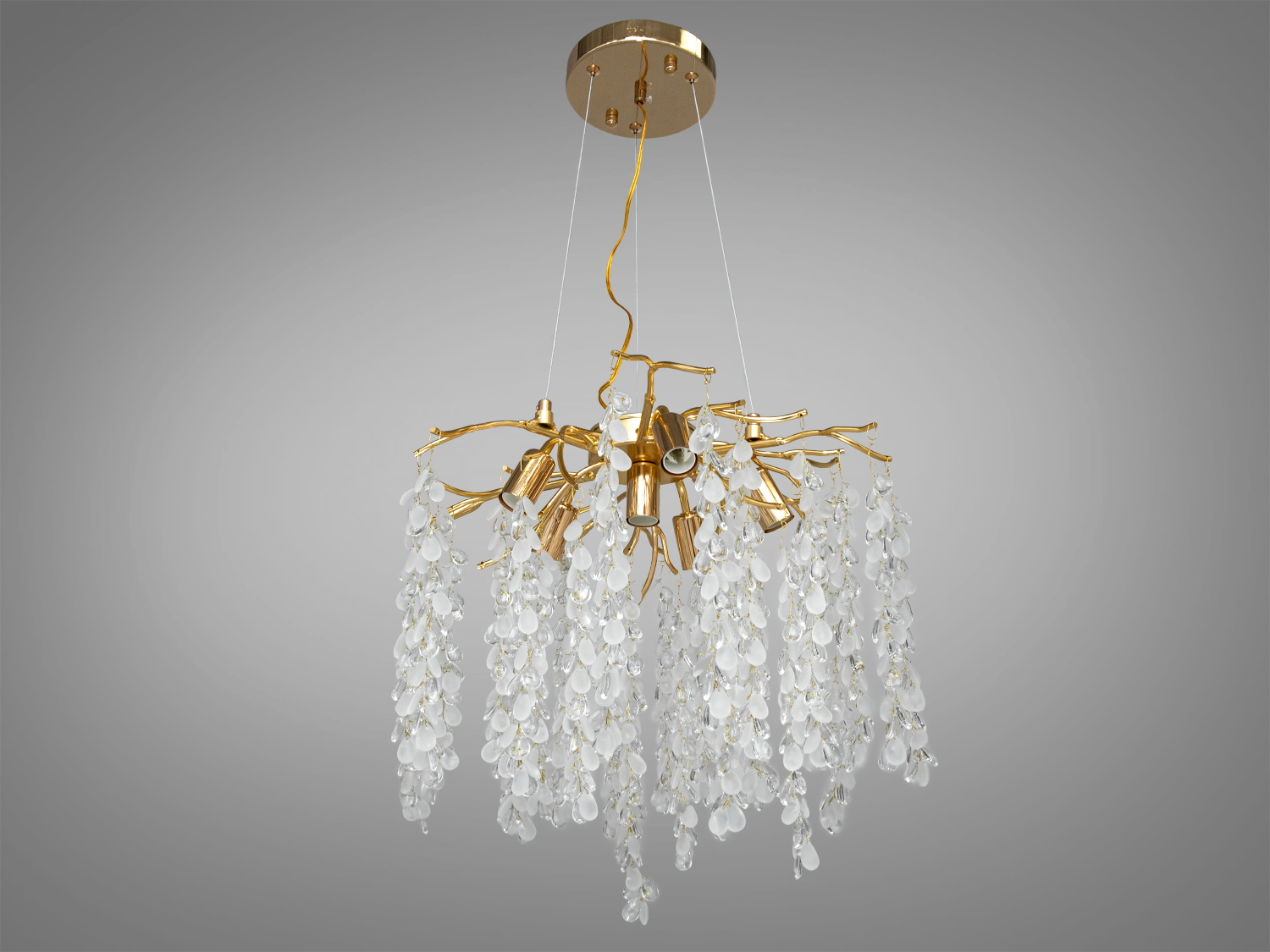 Кожен кришталь цієї люстри, відрізняючись формою і розміром, вловлює світло і розсіює його на всі боки, створюючи ілюзію природного водоспаду, що м'яко висвітлює простір. Особливість цієї моделі – у її здатності відтворювати дивовижну гру світла, що змінюється з кожним кутом зору, надаючи інтер'єру динамічність та жвавість.