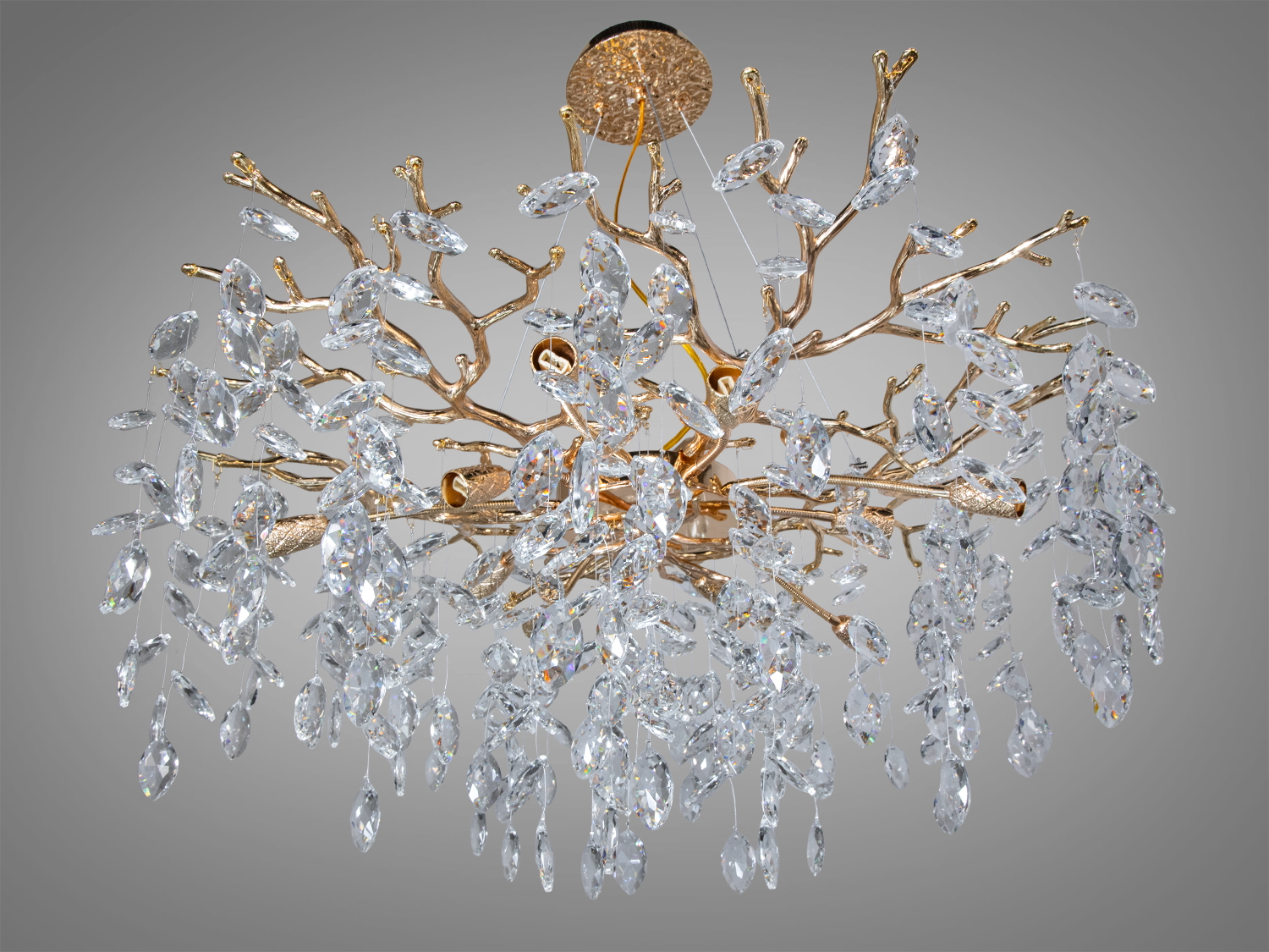 Ця нова люстра «Гліцинія» має 10 набоїв для ламп G9, рівномірно розподілених по всій конструкції, що забезпечує чудове освітлення. Люстра під лампочки G9 є ідеальним вибором для тих, хто цінує яскраве та ефективне освітлення. Завдяки своїй витягнутій формі та підвісним тросам, вона надає інтер'єру особливого шарму та витонченості.