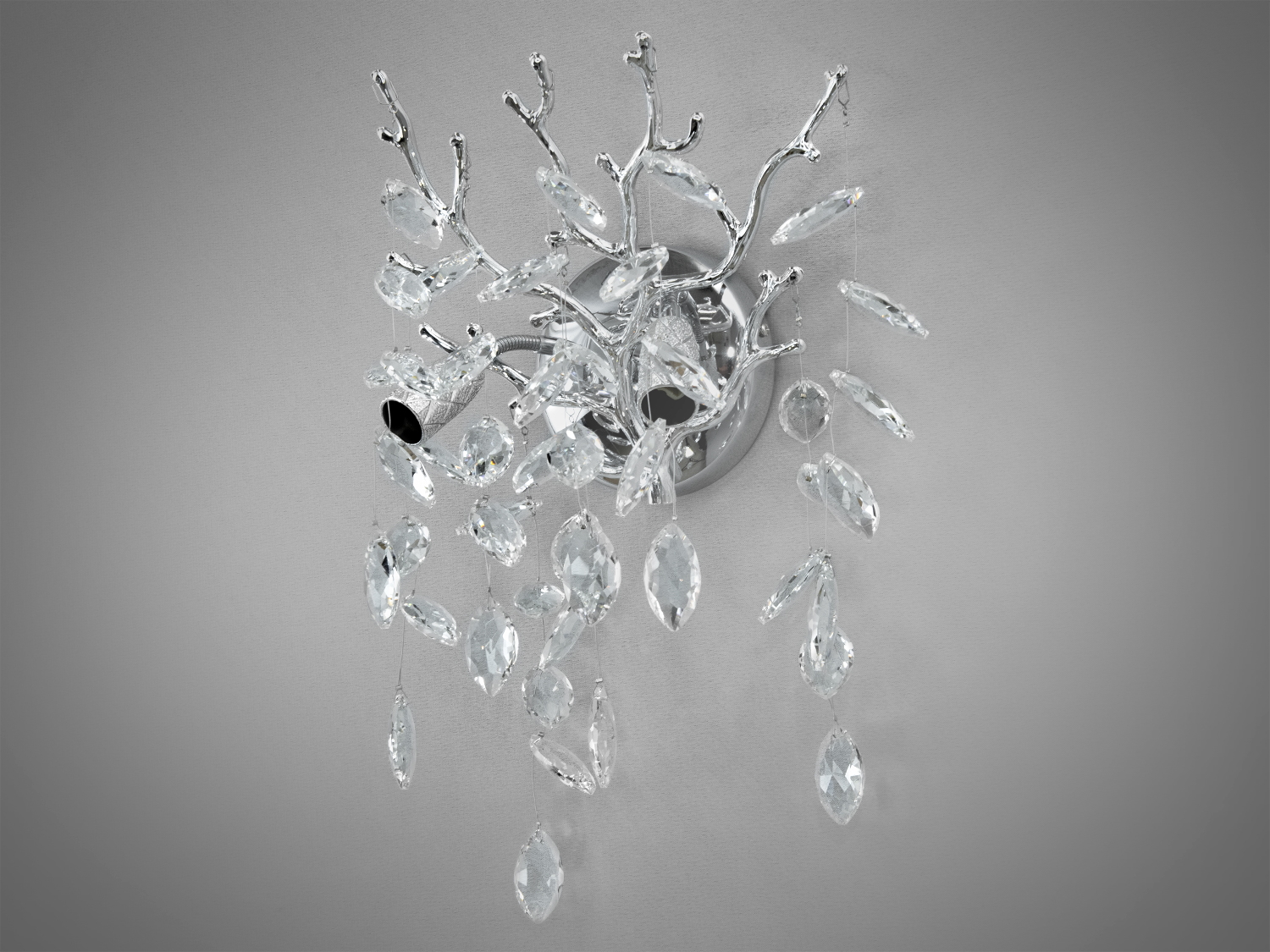Настінний світильник серії ′Глициния′ з кришталем — це ідеальне поєднання розкішного дизайну та функціональності. Його унікальна конструкція з гілками нагадує природні форми, прикрашені мерехтливими кришталевими підвісками, що створюють ефект блискучого водоспаду при потраплянні світла.
