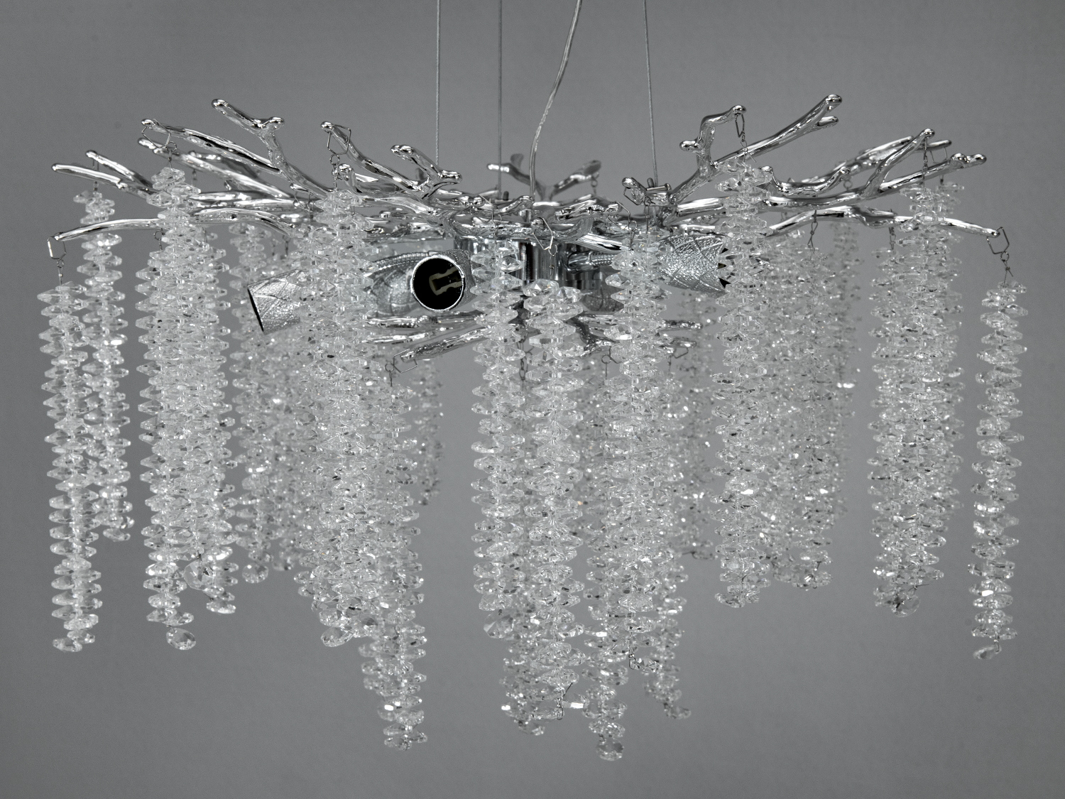 Підвісна люстра серії Гліцинія — це справжнє втілення розкоші та сучасного стилю. Її дизайн, натхненний природою, створює атмосферу неповторної естетики завдяки гіллястій основі, виконаній у золотистому відтінку. Витончені кришталеві підвіски, що імітують краплі води, підсилюють цей ефект, створюючи чарівну гру світла.