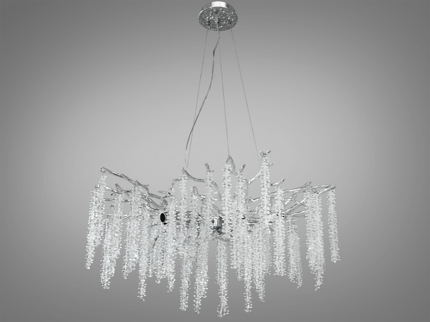 Люстра оснащена 10 лампами з патроном G9, що забезпечують яскраве освітлення. Розташування ламп у каркасі дозволяє світлу проходити крізь кришталеві елементи, підсилюючи їх блиск і переливання.