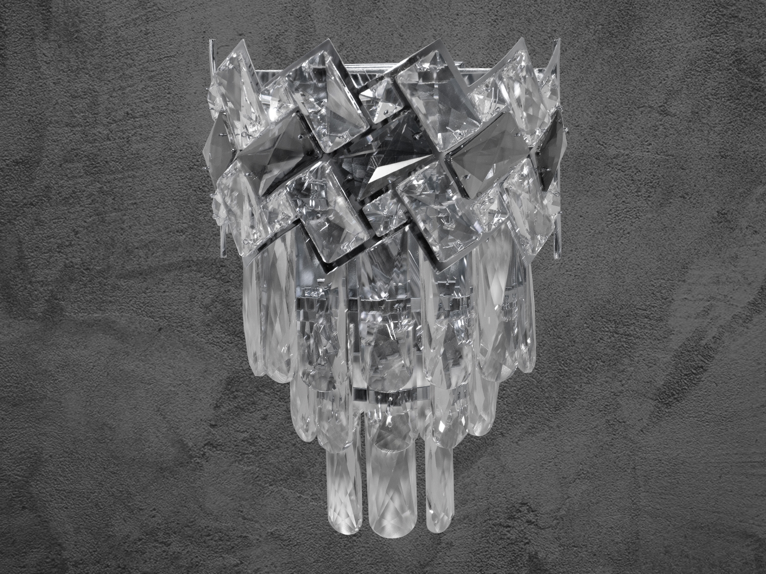 Елегантне кришталеве бра в спальню, колір хром, на 2 лампи