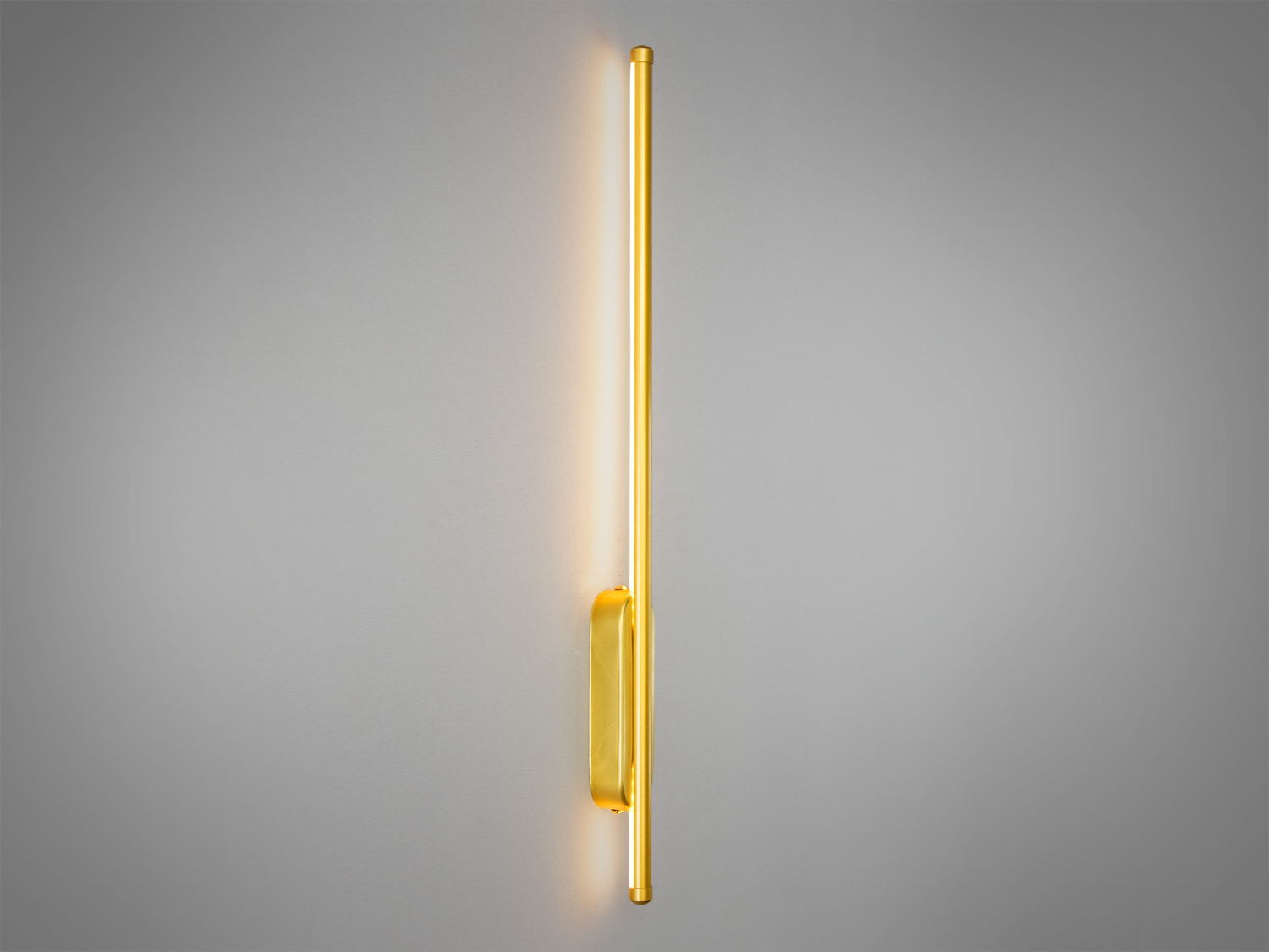 Проста, але виразна форма бра є тонкою вертикальною лінією, яка завдяки вбудованому світлодіоду рівномірно випромінює м'яке світло. Центральна деталь із золотим покриттям додає витонченості та робить світильник акцентним елементом інтер'єру.