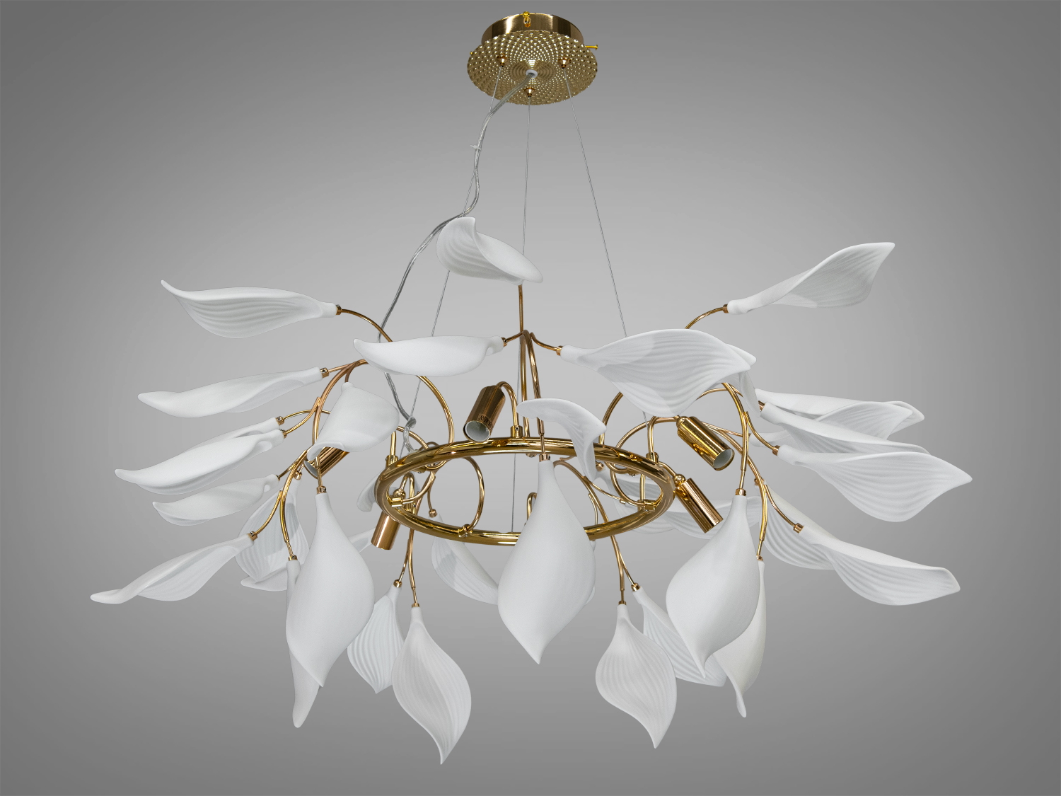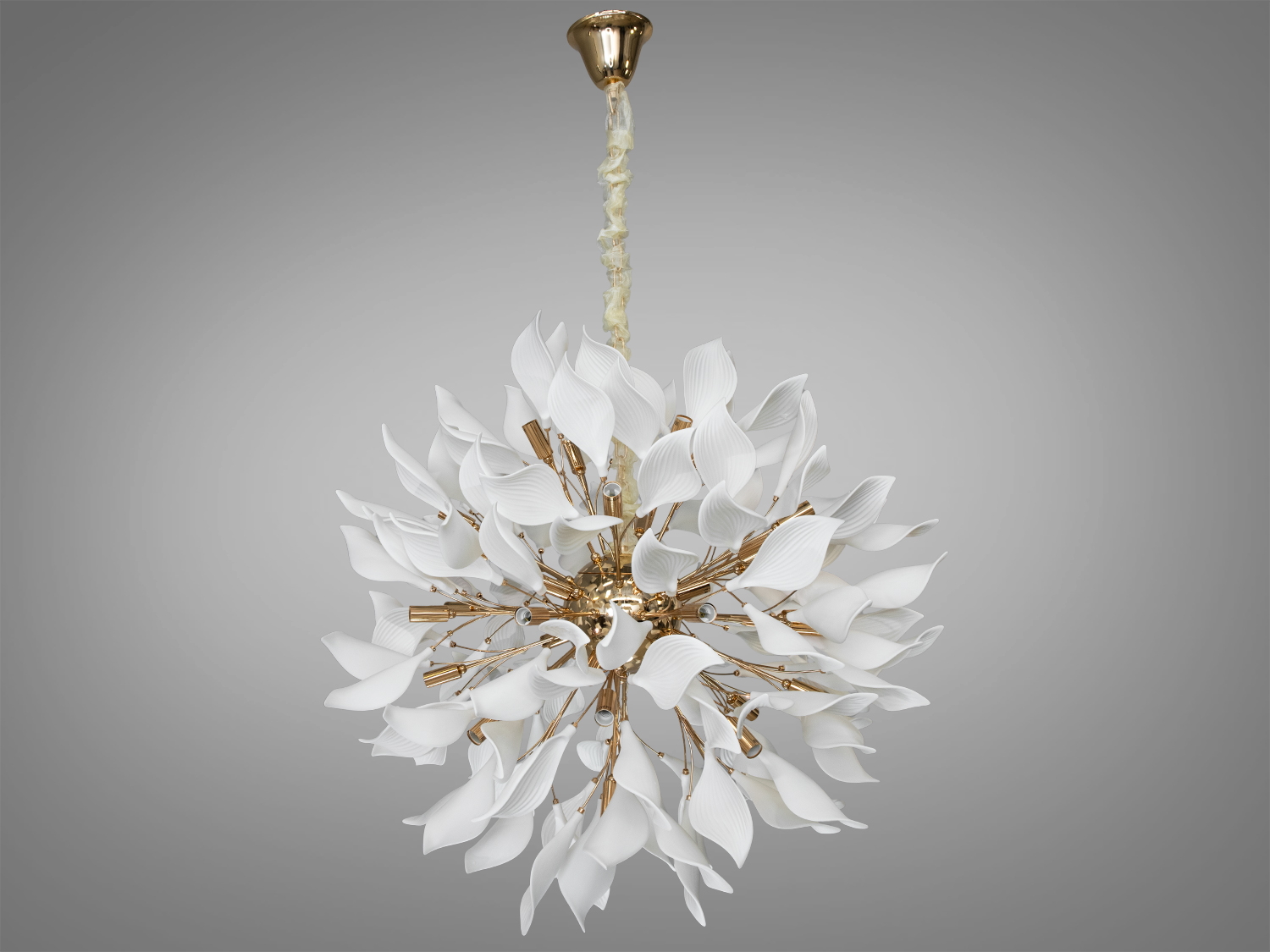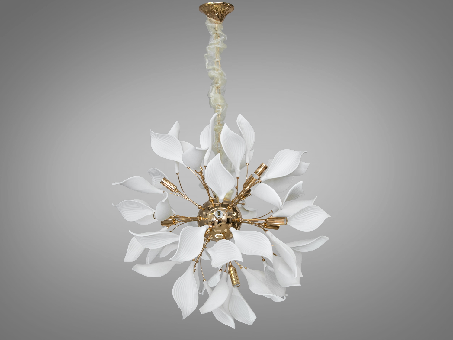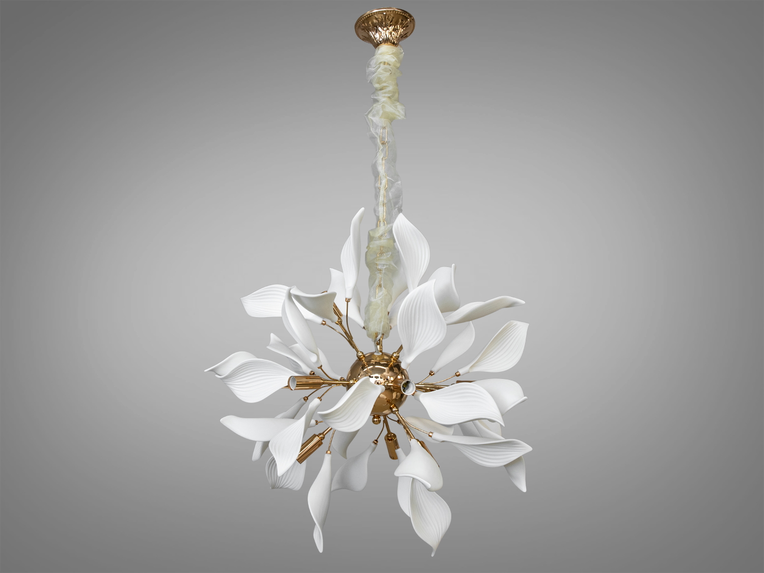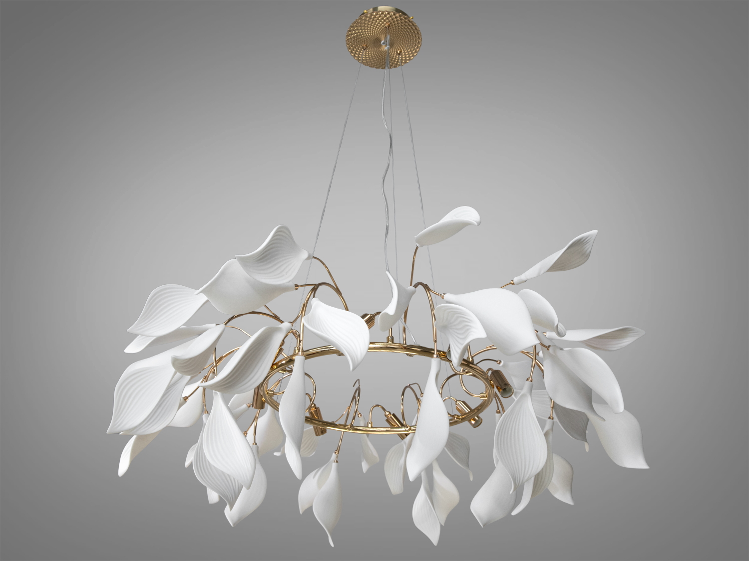 Дизайнерська порцелянова люстра у вітальню, золото, на 18 ламп