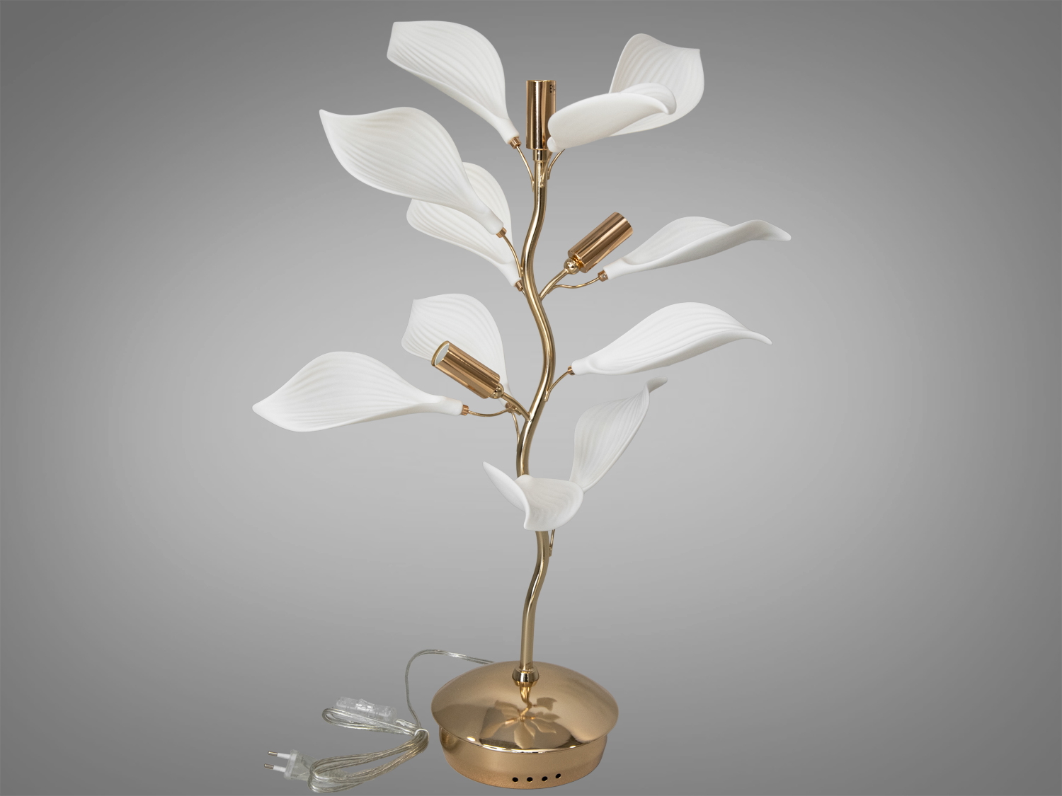 Вишуканий торшер із керамічними елементами, на 5 ламп, золото