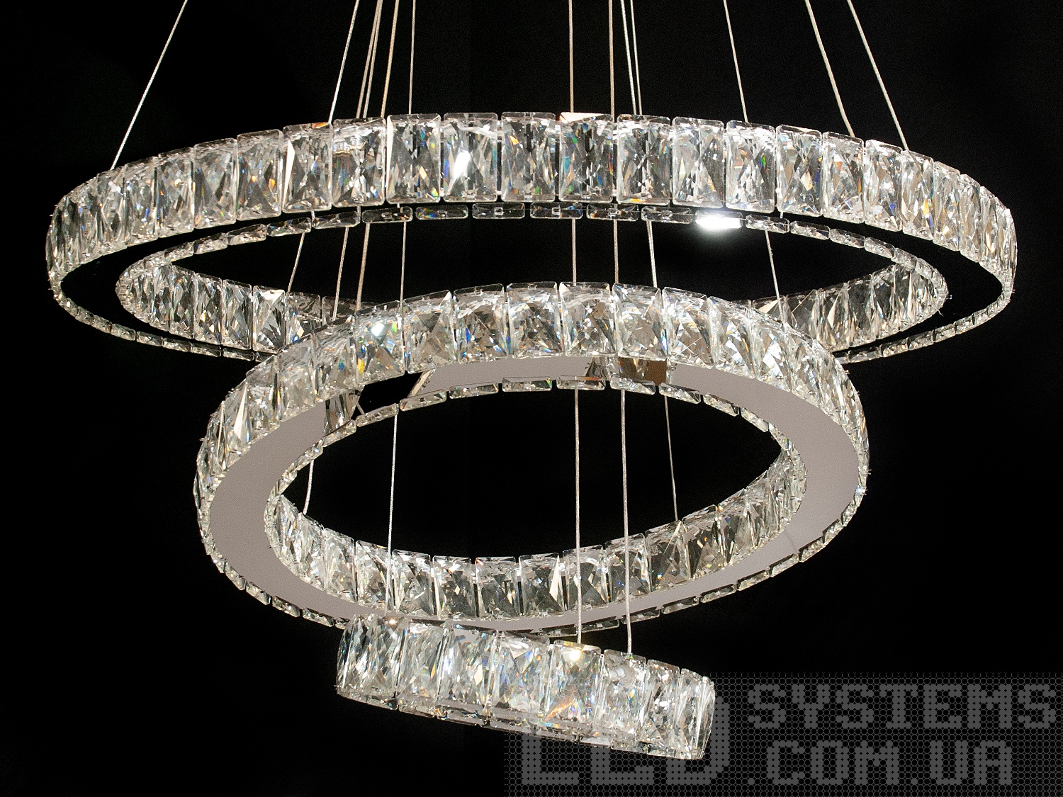 Унікальна новинка, світлодіодна люстра кришталі кільцями, 70 Вт, хром