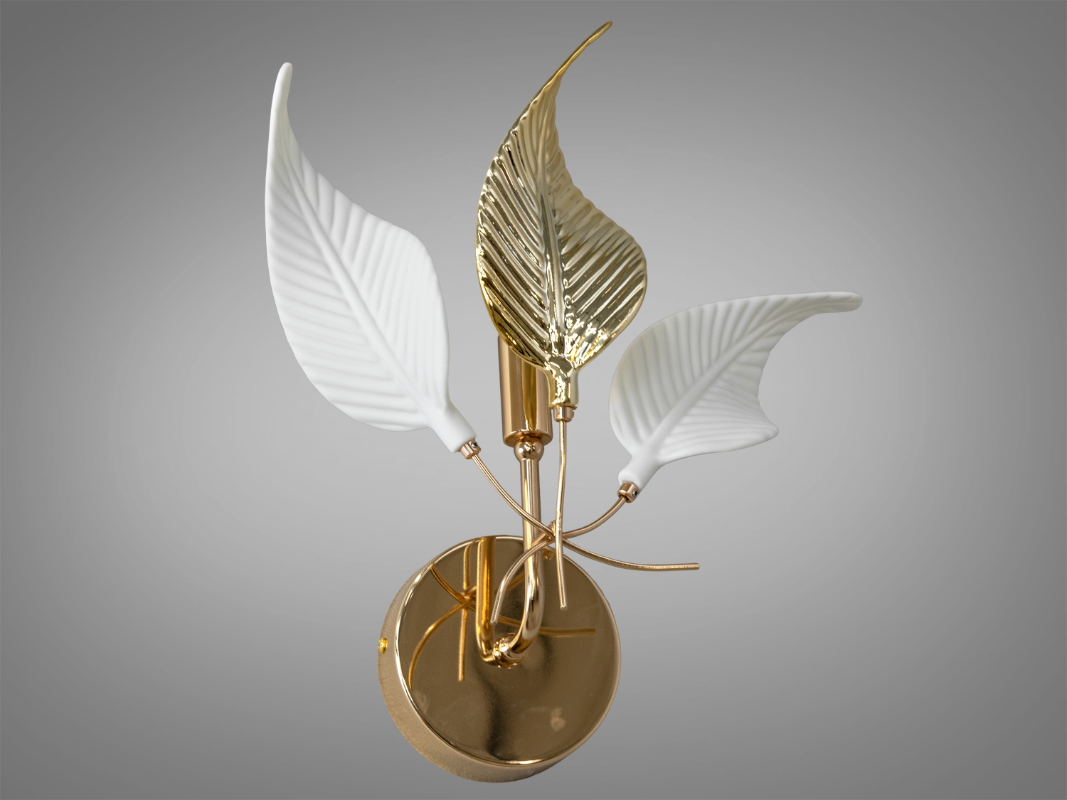 Унікальне бра з фарфоровими елементами, золото, на 1 лампу