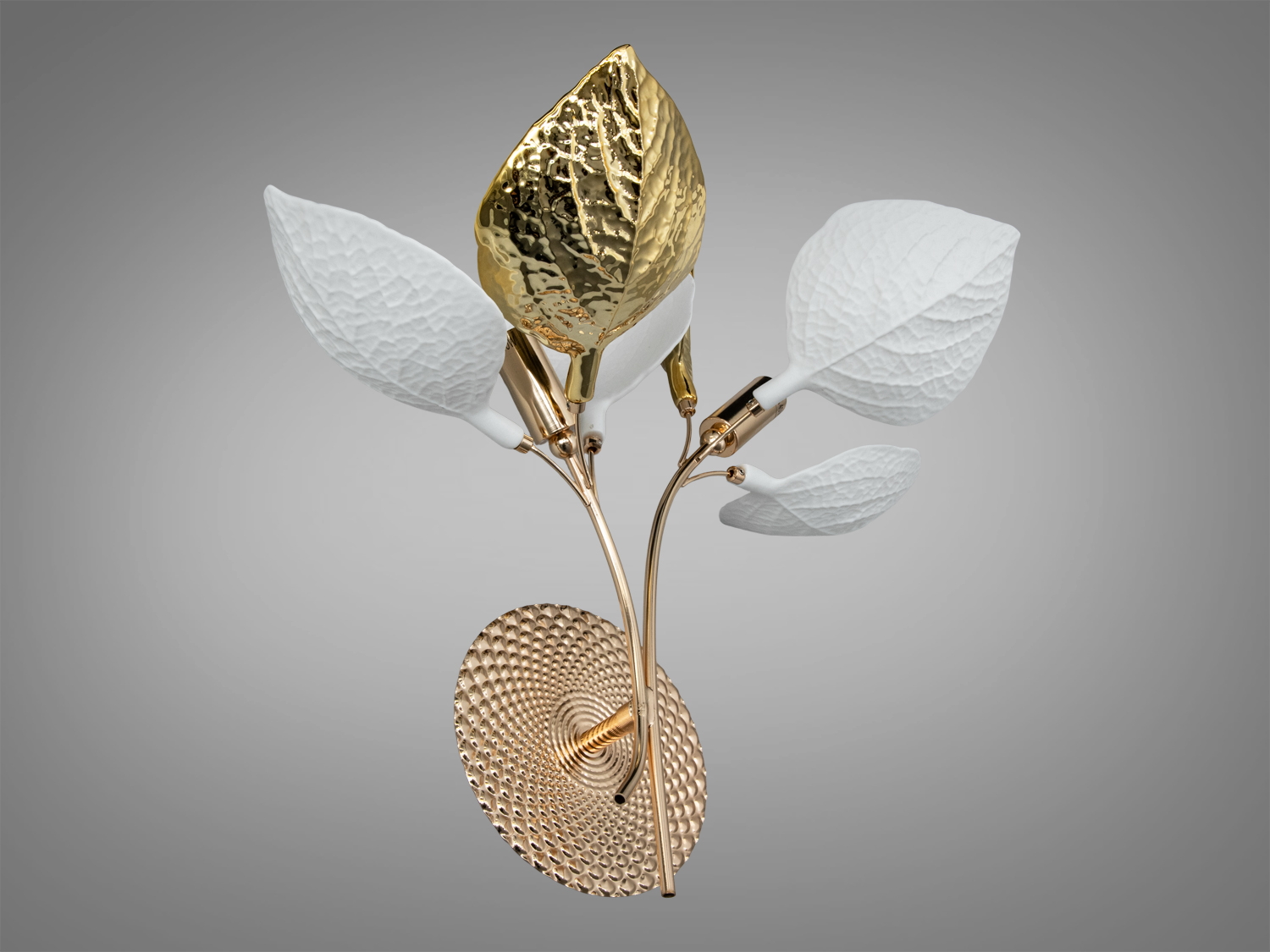 - Білі та золоті пелюстки формують декоративний акцент, що нагадує квітку або листя.