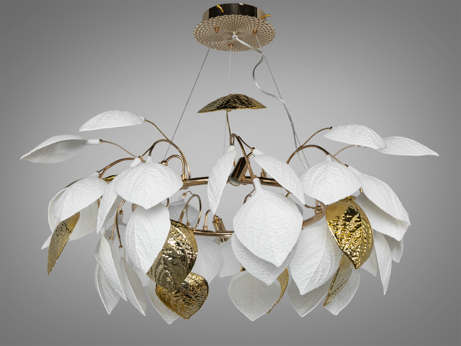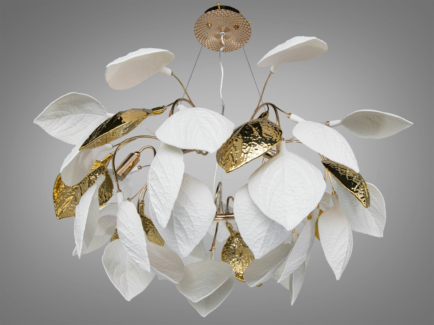 Люстра Diasha 7238-12PRGD з білими та золотими листками сучасна декоративна