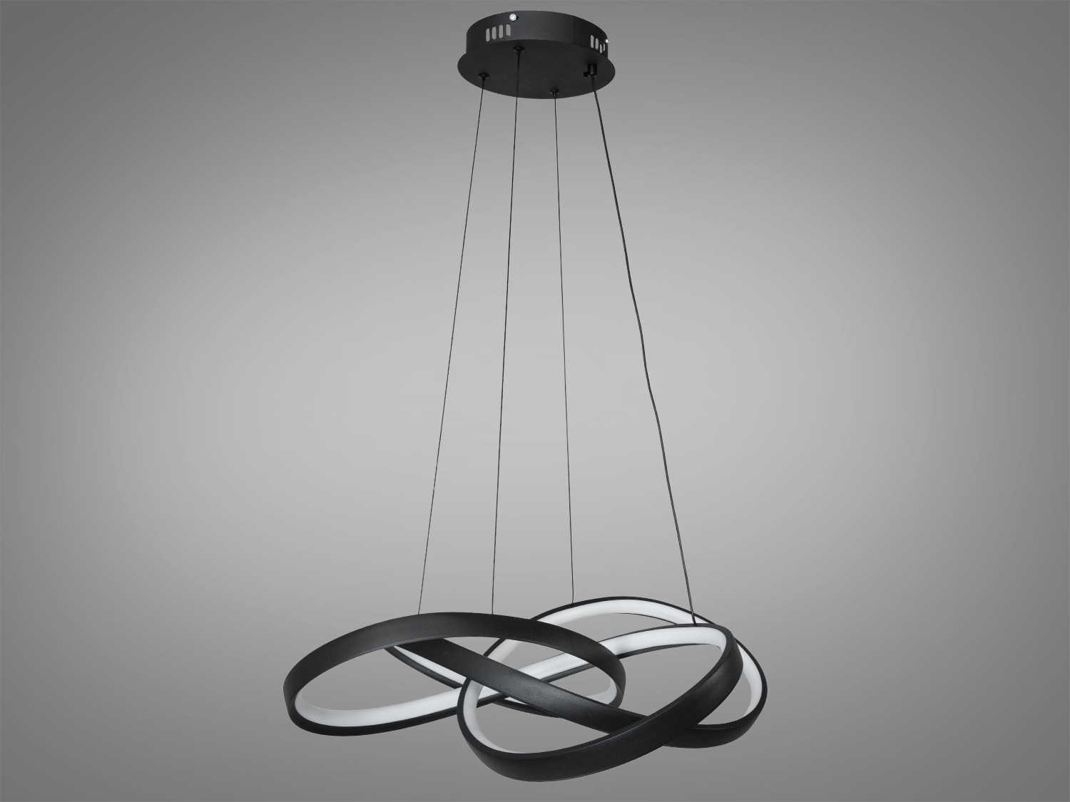 Кільця, що переплітаються, створюють динамічну композицію, яка гармонійно вписується в будь-який сучасний інтер’єр. Білий колір корпусу додає елегантності, а акрилові кільця забезпечують м′яке та рівномірне освітлення.