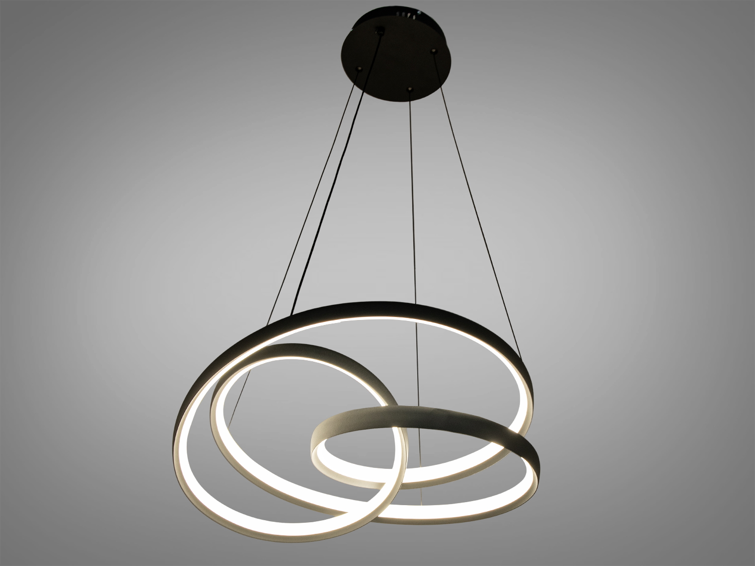 Мінімалістична LED люстра-підвіс для залу з потужністю 90 Вт – втілення сучасного мистецтва та технологій. Її унікальний дизайн, що є переплетенням чорних акрилових кілець, створює ілюзію руху і легкості. Матеріалом основи служить метал, що забезпечує міцність та довговічність, а акрилові розсіювачі рівномірно розподіляють світло, додаючи м'якість та комфорт. Чорний колір та мінімалістична форма роблять люстру універсальною для більшості сучасних інтер'єрів.