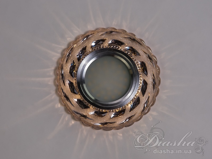 Периметр точкового врізного світильника обрамлений вбудованим LED підсвічуванням потужністю 3 Вт, що створює м′який світловий ореол навколо світильника. Такий ефект додає вишуканості та затишку приміщенню, створюючи неповторну атмосферу. Встановлення точкових світильників по периметру стелі візуально підвищує її та робить простір кімнати більшим і відкритим.