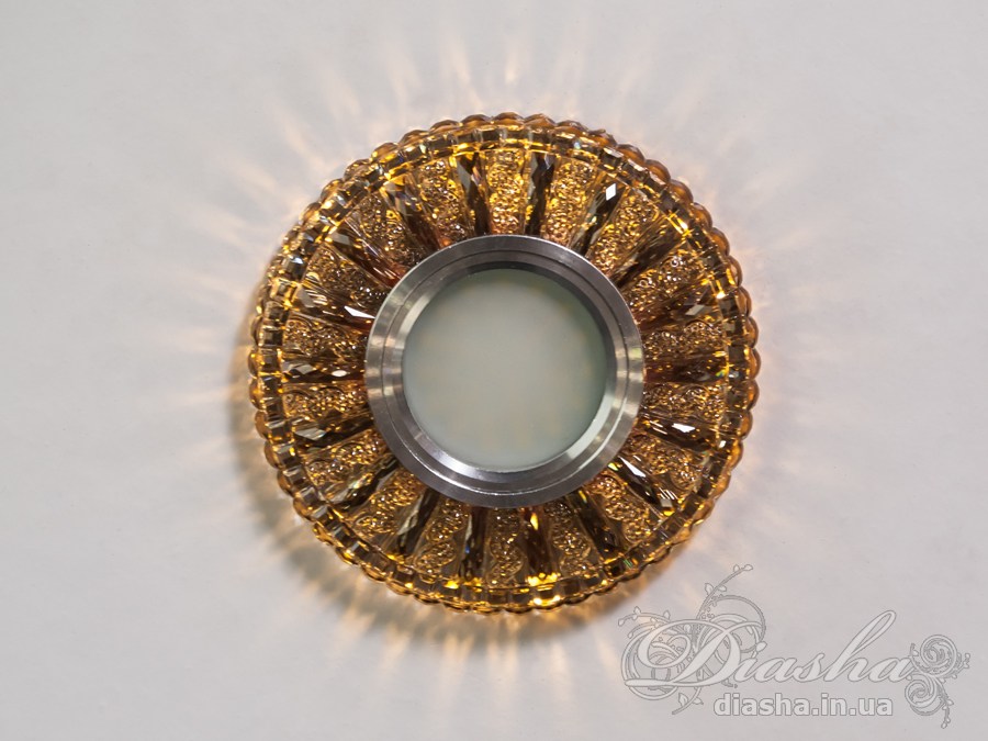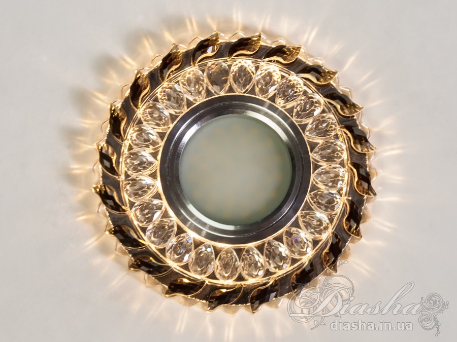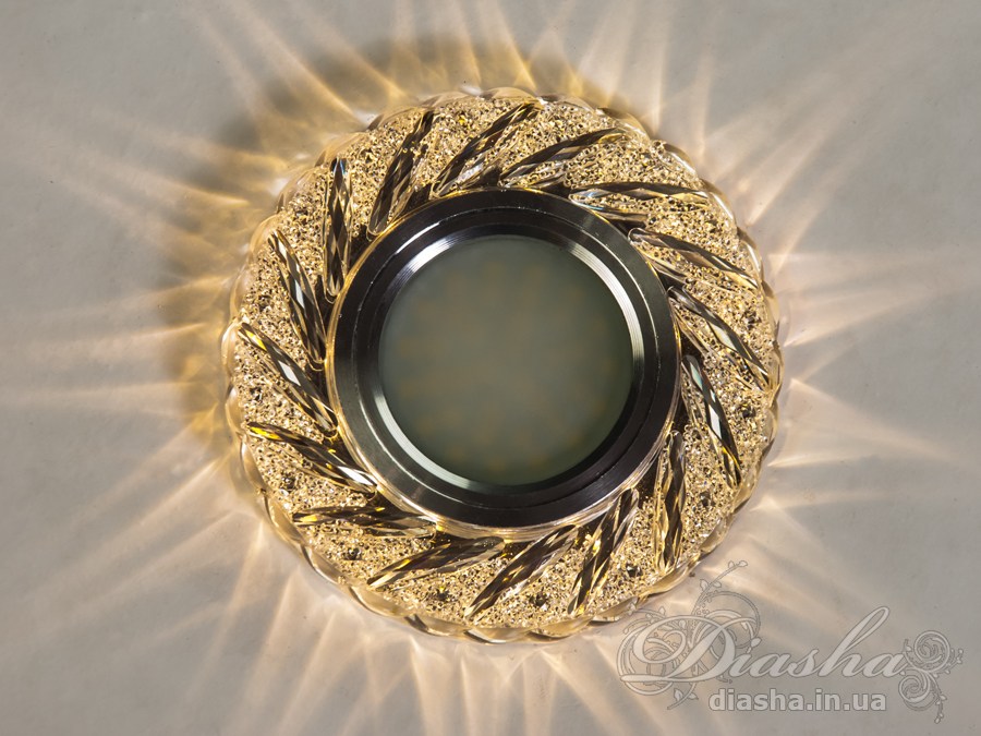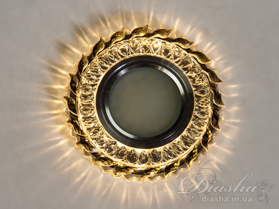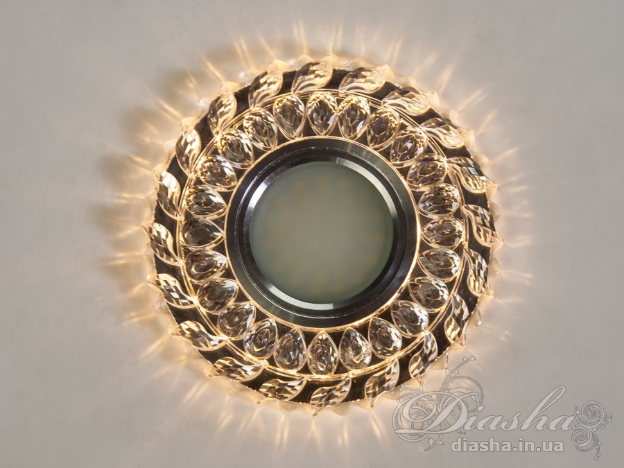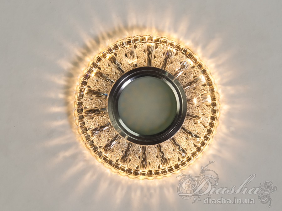 Завдяки вбудованому LED підсвічуванню потужністю 3 Вт, світильник створює м′який світловий ореол, що надає приміщенню особливого затишку. Хромована вставка для лампи MR16 забезпечує яскраве центральне освітлення, а кришталеві елементи по периметру додають вишуканості.