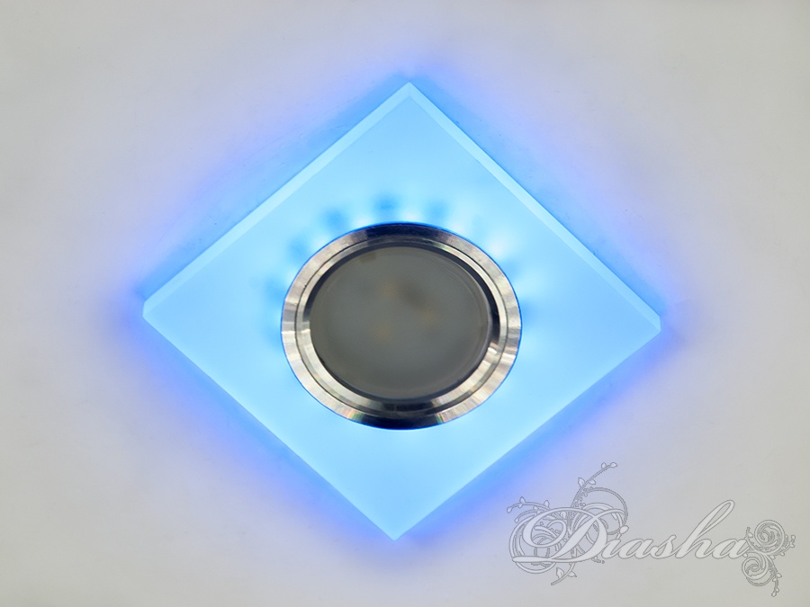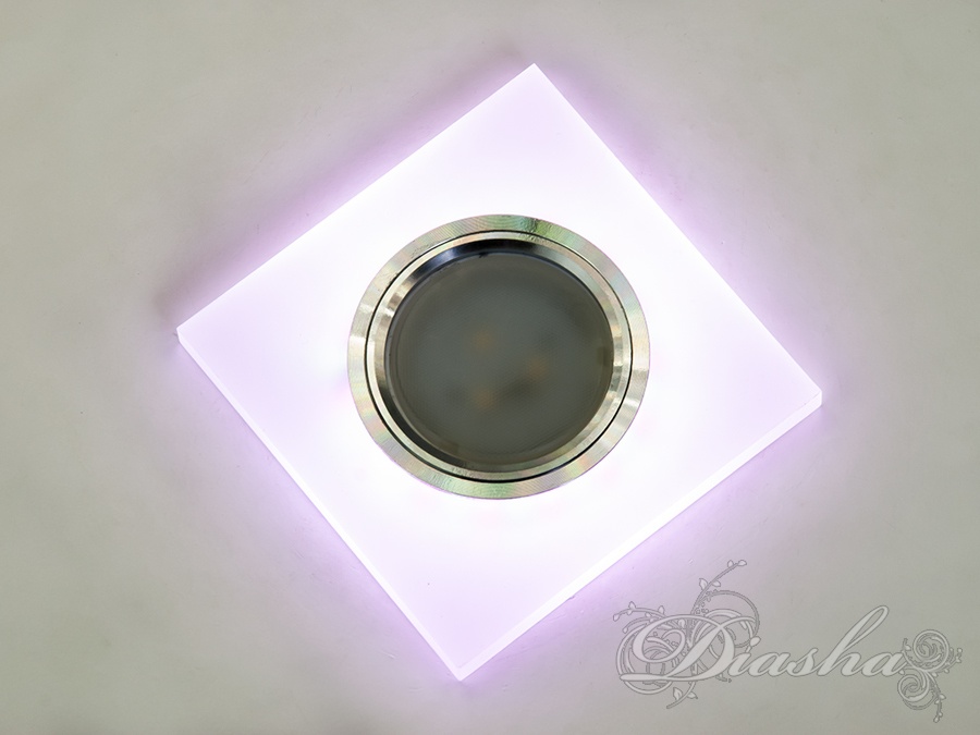 Периметр точкового врізного світильника обрамлений вбудованим LED підсвічуванням потужністю 3 Вт, що створює м′який світловий ореол навколо світильника. Такий ефект додає вишуканості та затишку приміщенню, створюючи неповторну атмосферу. Встановлення точкових світильників по периметру стелі візуально підвищує її та робить простір кімнати більшим і відкритим.