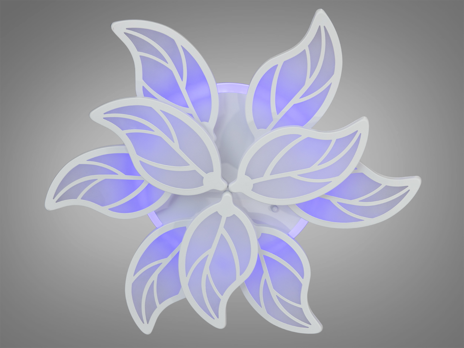 Світлодіодна люстра має кілька режимів: холодний 6000К, нейтральний 4100К, теплий 3200К, включення-вимикання, кольорове підсвічування, змішаний режим. Люстра має електронний димер, що дозволяє регулювати яскравість люстри від 5% до 100% за допомогою пульта, що входить до комплекту. Люстра світить яскраво, але не сліпить за рахунок матеріалу акрилу, до того ж цей матеріал дуже міцний його важко пошкодити.
