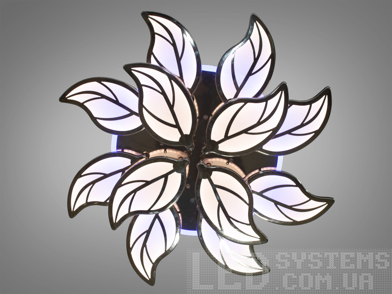 LED-люстра в спальню з пультом, з LED підсвічуванням, з димером підходить на площу приміщення приблизно 15 кв.м. Застосовується для зали, вітальні, спальні, кухні, коридору, дитячої, тому що відсутні скляні елементи.