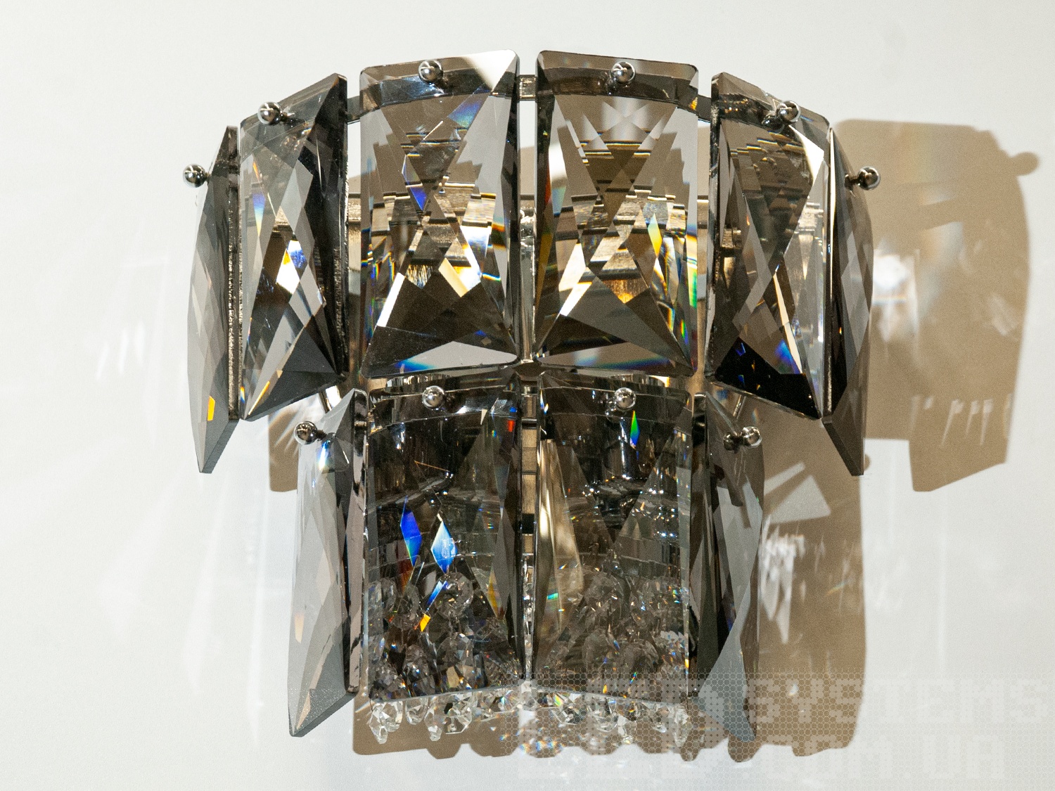 Дизайн бра прекрасно підійде як для класичних, так і для сучасних просторів, включно зі спальнями, вітальнями або зоною відпочинку. Світло, відбиваючись від кристалів, створює гру тіней і світла, додаючи кімнаті атмосферу тепла та затишку.