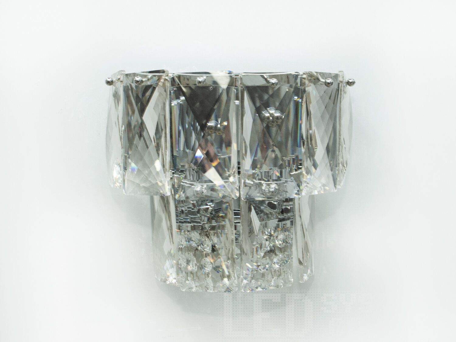 Розкішне класичне бра з кришталю в спальню — це втілення вишуканого стилю та розкоші. Основний акцент зроблений на сяйливих кристалах, які переливаються під світлом, створюючи ефектний і чарівний блиск. Кришталеві елементи з майстерною огранкою ідеально гармоніюють із металевою основою кольору хром, додаючи сучасності та витонченості в інтер'єр.