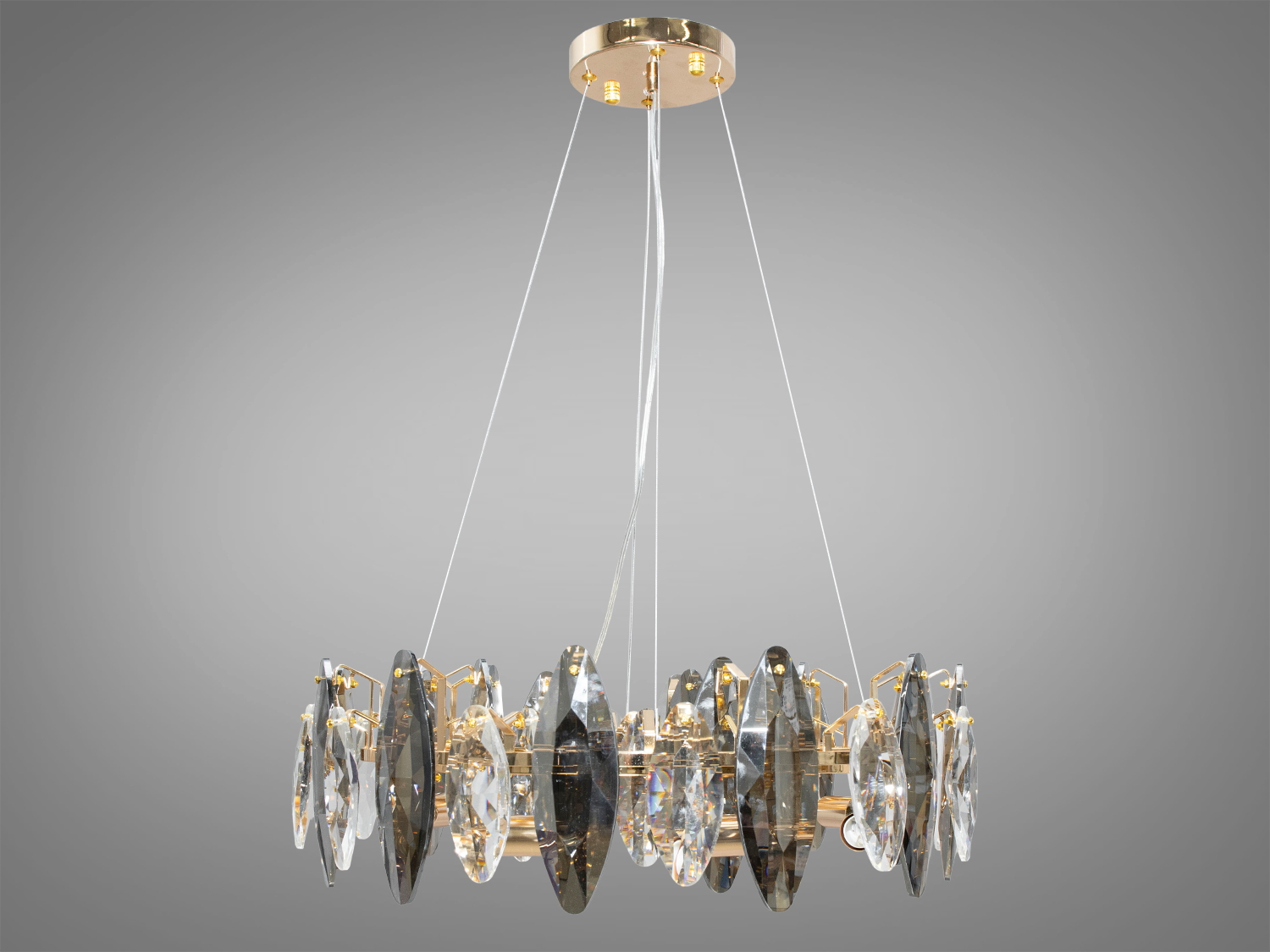 Дизайнерська кришталева люстра на кухню в сучасному стилі, також добре виглядатиме в інтер'єрі зали, вітальні, спальні, їдальні, сучасних холах. Висота люстри регулюється, завдяки чому підходить для низьких стель. У класичний інтер'єр вона вносить нотки сучасності та легкої грайливості, а квартирі студії у стилі лофт дарує крапельку суворості та впорядкованості.