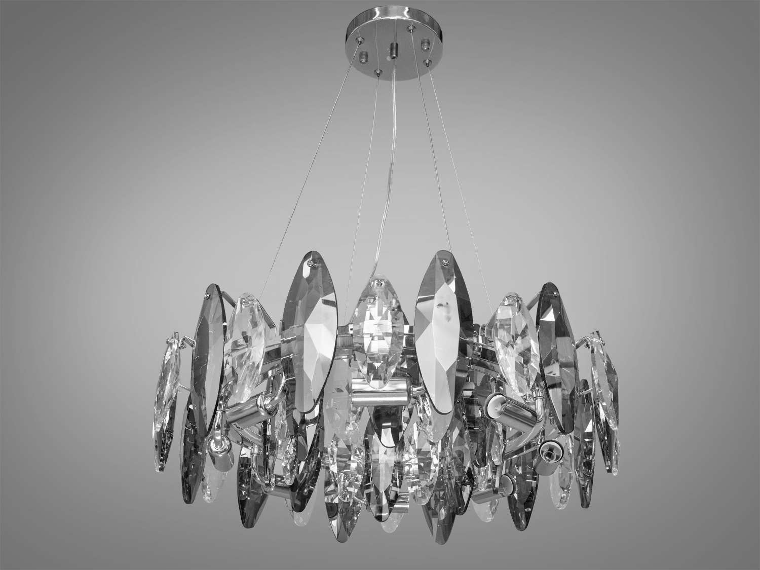 Дизайнерська кришталева люстра на кухню на 6 ламп, колір хром