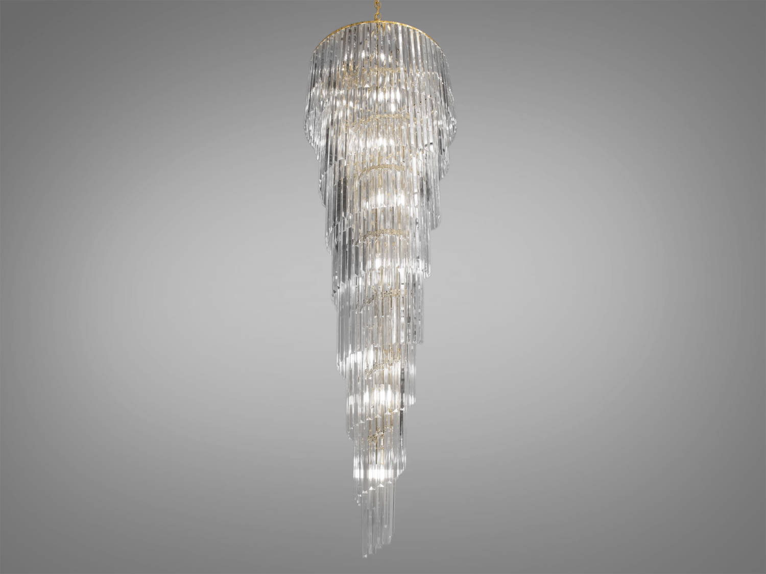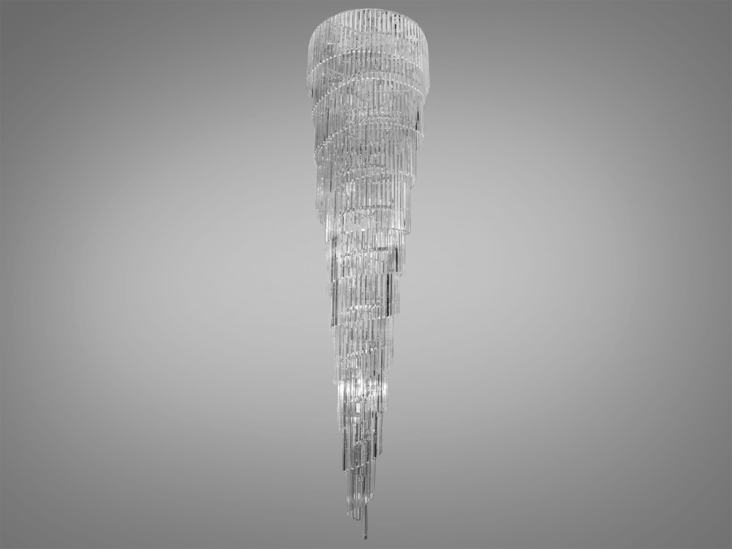 Дизайнерська каскадна кришталева люстра на 24 лампи ідеально підходить для використання також у вітальнях, сходових зонах приватних будинків, ресторанів чи готелях, холах. Кришталеві підвіски, виконані у правильній формі, створюють захоплюючий світловий ефект, граючи на світлі.