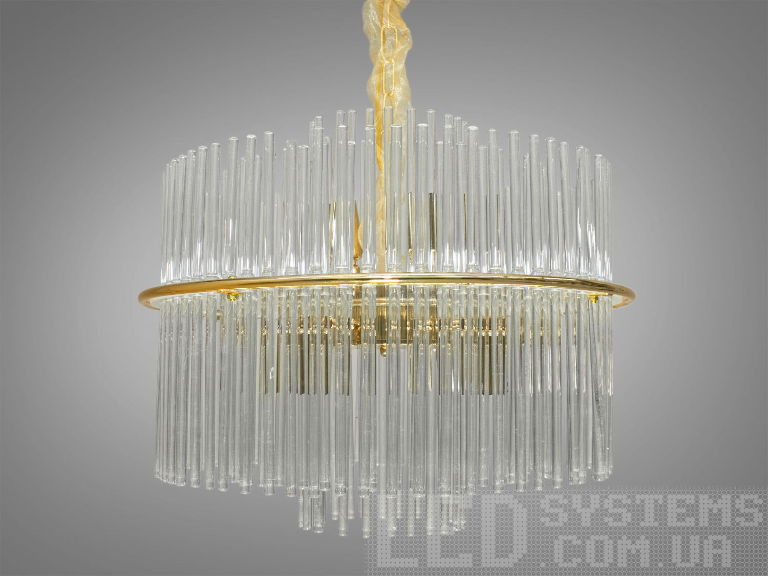 Сучасна підвісна люстра зі скляними підвісками у вигляді паличок – це втілення ефемерності та витонченості. Ця люстра стане чудовим акцентом у вітальнях, їдальнях чи сучасних холах.