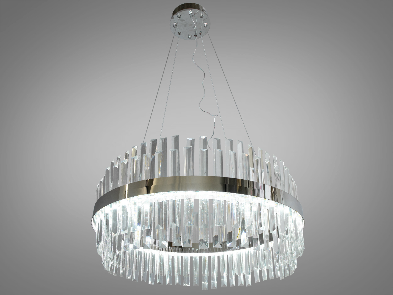 Елегантна кришталева LED люстра у вітальню також ідеально підійде для невеликих приміщень, і навіть для низьких стель, тому що висота регулюється, наприклад, у коридор, кухню, спальню, для залу або у вітальню.