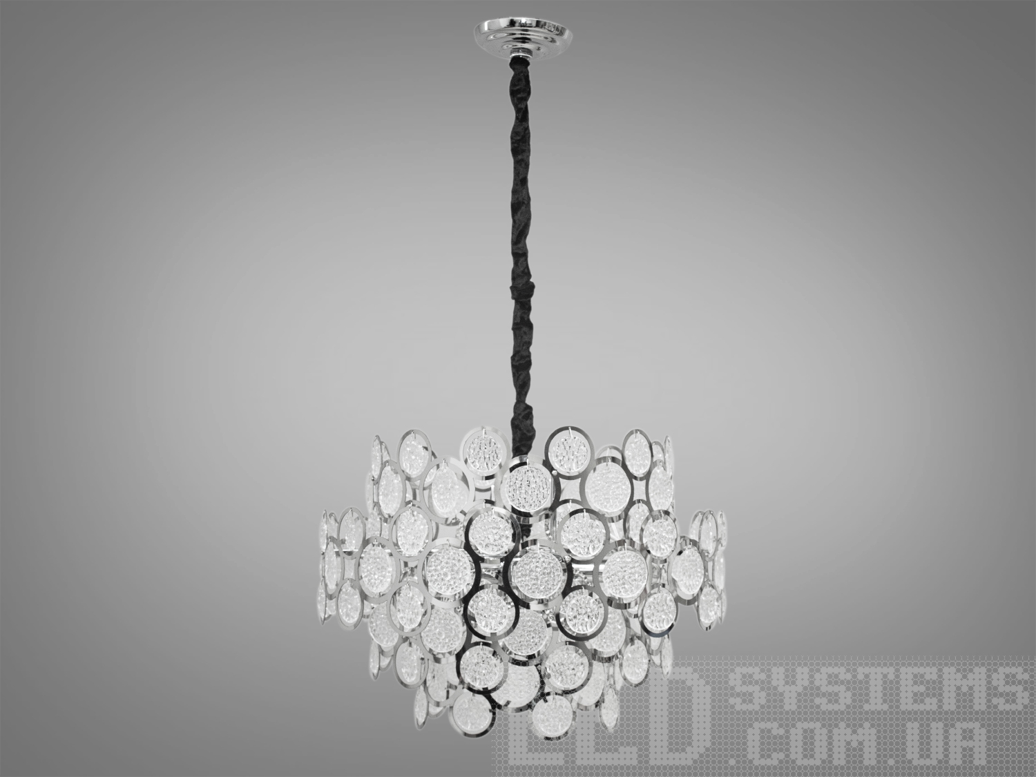 Підвісна стильна люстра у вітальню, колір хром, на 8 ламп
