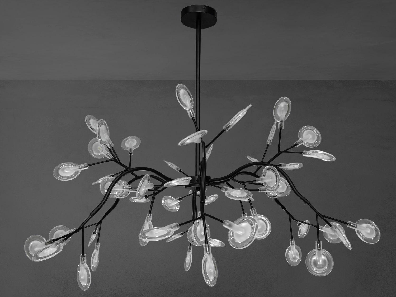 Підвісна люстра "Світлячок" у вітальню, колір чорний, 54 лампи
