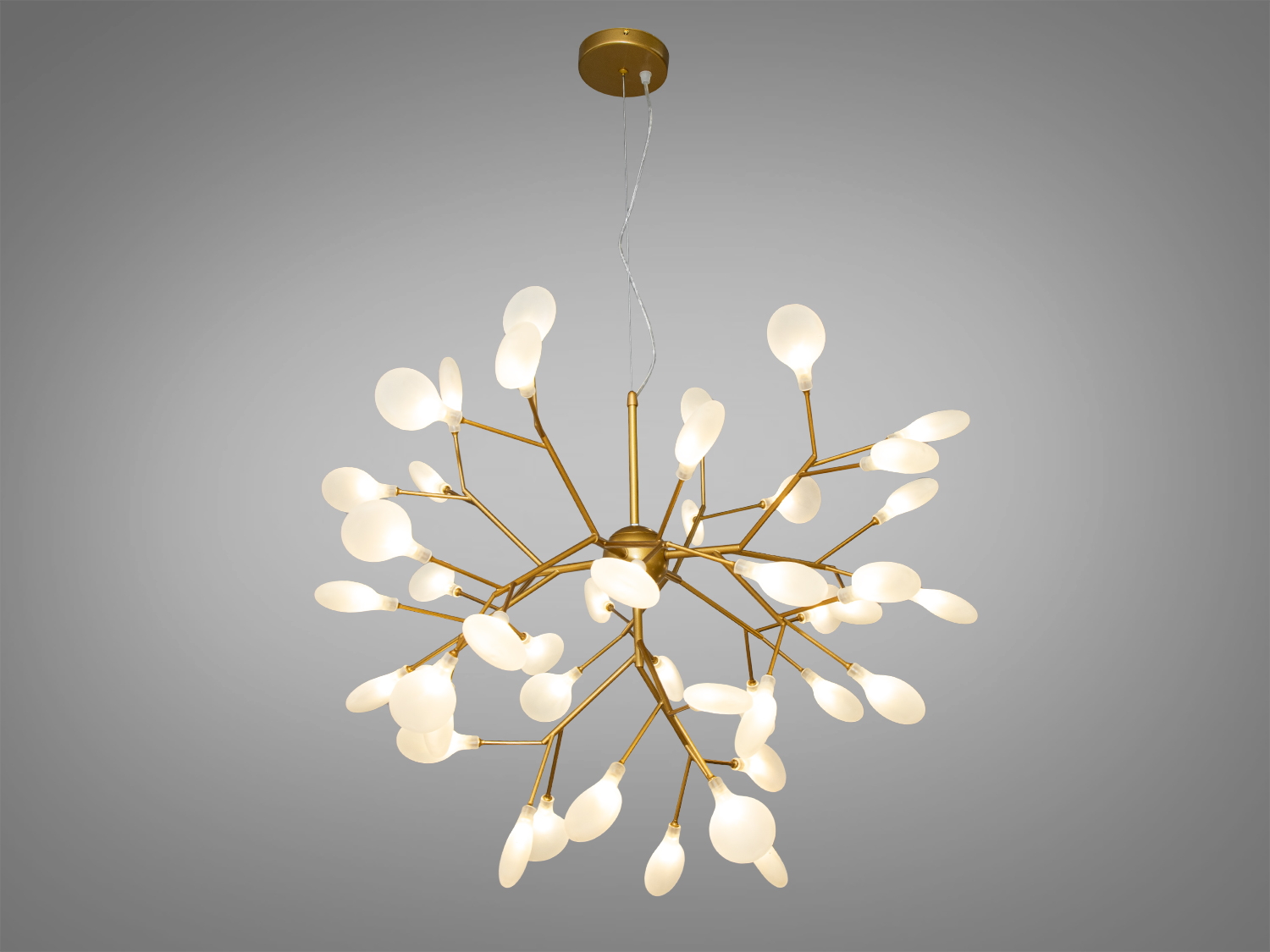 Креативна люстра "Світлячок" для залу, колір золото сатин, на 45 ламп