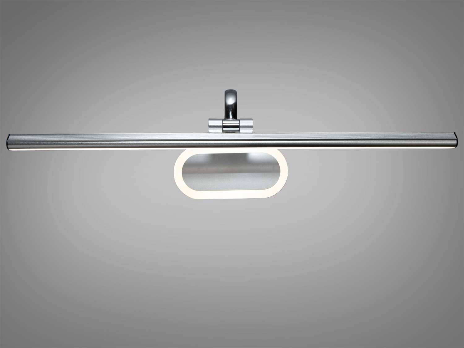 Овальна хромована металева основа цього LED світильника, що грає з контурним світлом, є майже скульптурною у своїй формі, даруючи простору відчуття цілісності та балансу. Хромований тримач, що закінчується хромованим плафоном із чорними вставками по краях, інтригує своєю простотою та чистотою ліній, надаючи світильнику сучасного вигляду, який відповідає найвибагливішим вимогам дизайну. Плафон має можливість регулювання по вертикалі, що дозволяє ще ціленаправленіше спрямувати підсвічування.