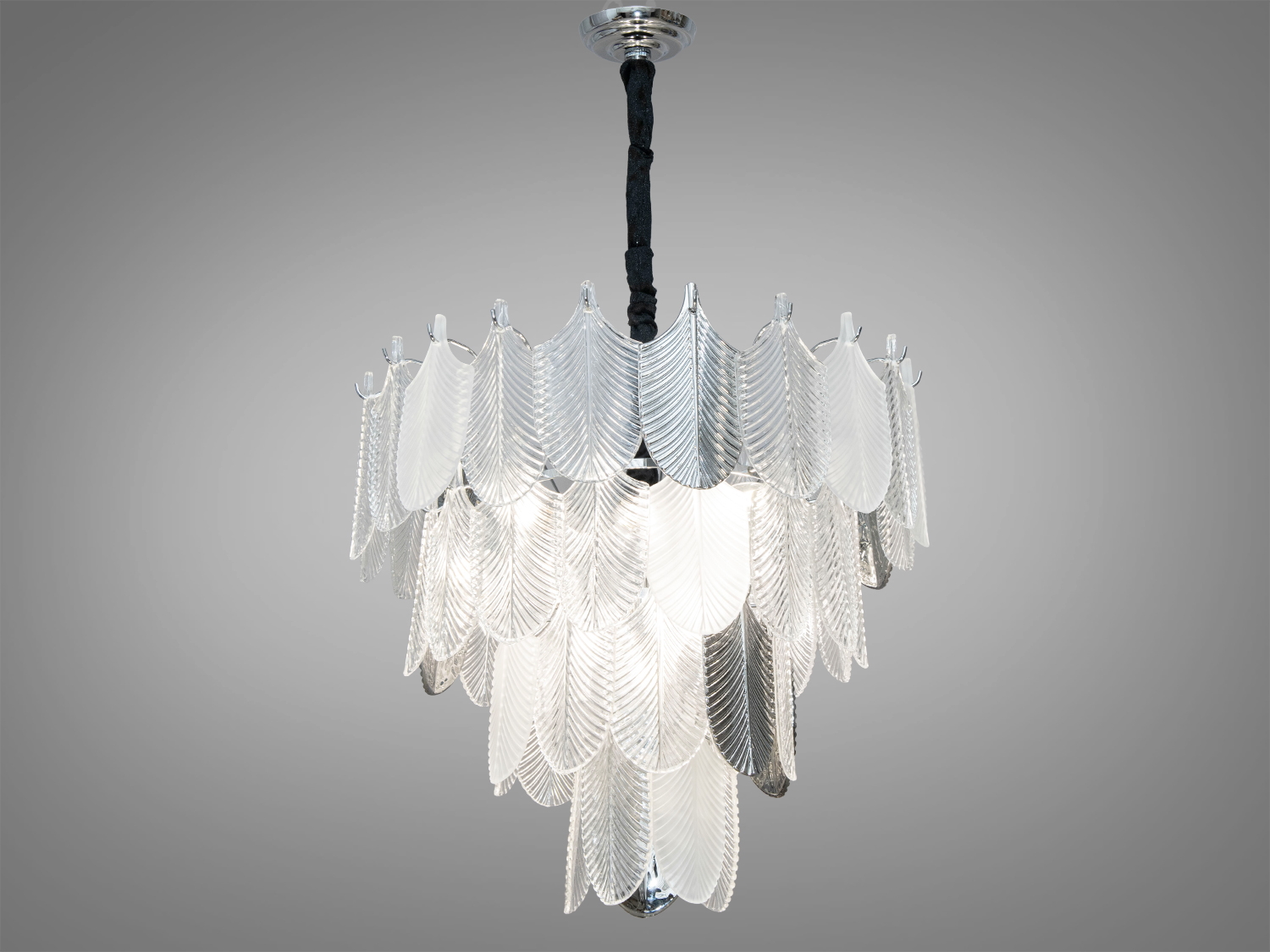 Вражаюча кришталева люстра в спальню на 4 лампи зі скляними матовими пелюстками добре виглядатиме в сучасному інтер'єрі залу, спальні, вітальні чи кухні. На неї можна дивитися під будь-яким кутом, і не дивлячись на легкість конструкції люстри, ви завжди бачитимете лампи тільки через матове скло, такими ж пластинами як на цій люстрі комплектуються люстри Hloya бренд Freya, або наприклад люстра FROST, і багато інших.