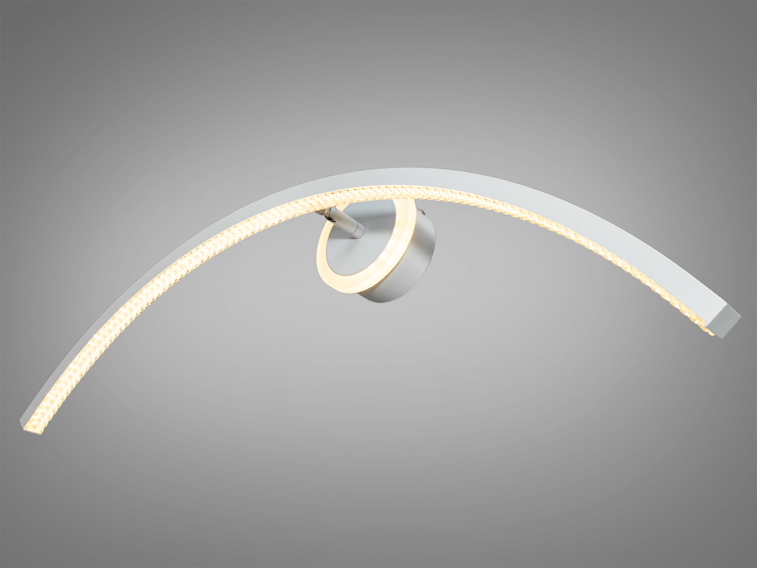 У цьому світильнику від ТМ "Діаша" уособлено легкість і прозорість, його дизайн віддзеркалює чистоту і сучасність. Виконаний в білому кольорі, із зігнутим плафоном, що має акриловий розсіювач у формі кришталів, він привносить у простір елементи розкоші та вишуканості, ніби витончені прикраси, що поширюють світло. Потужність у 9 Вт забезпечує м'яке, але достатньо яскраве світло для підсвічування дзеркал, картин, стінних ніш чи інших важливих деталей інтер'єру.