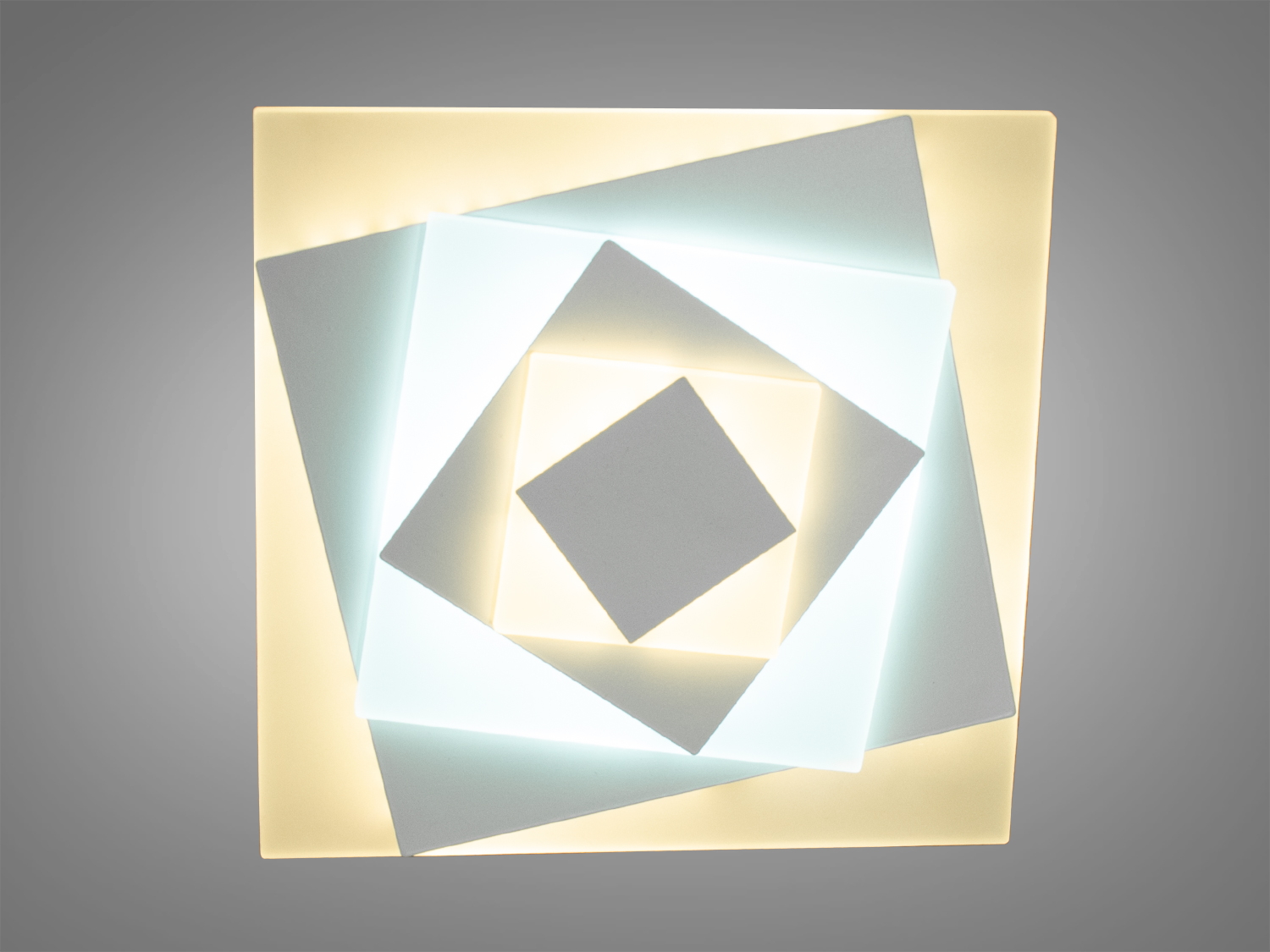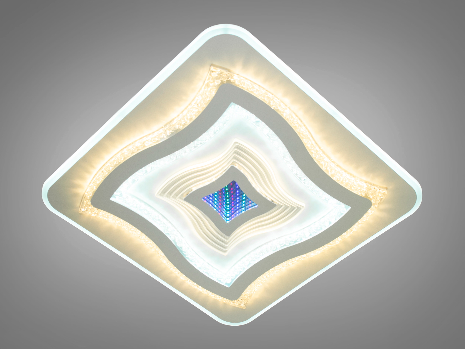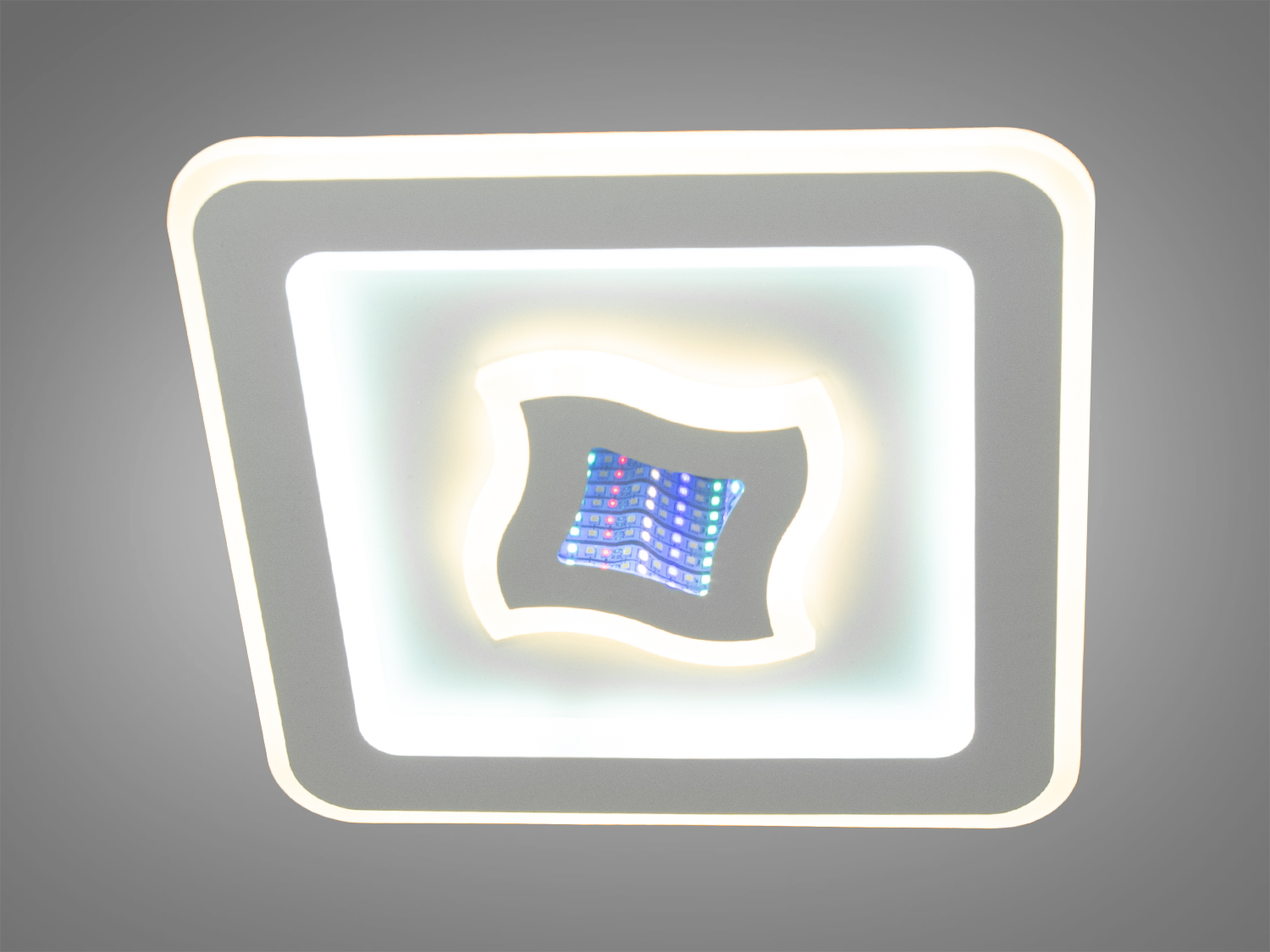 Світлодіодна панель має кілька режимів: холодний 6000К, нейтральний 4100К, теплий 3200К, димер, що дозволяє регулювати яскравість люстри від 5% до 100% за допомогою пульта, що входить до комплекту.