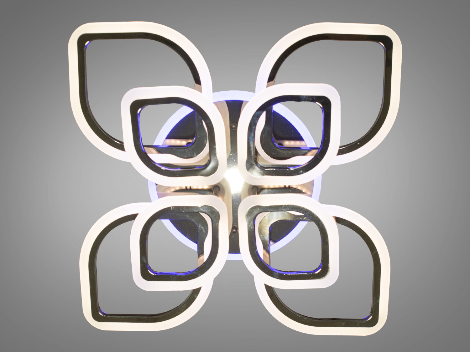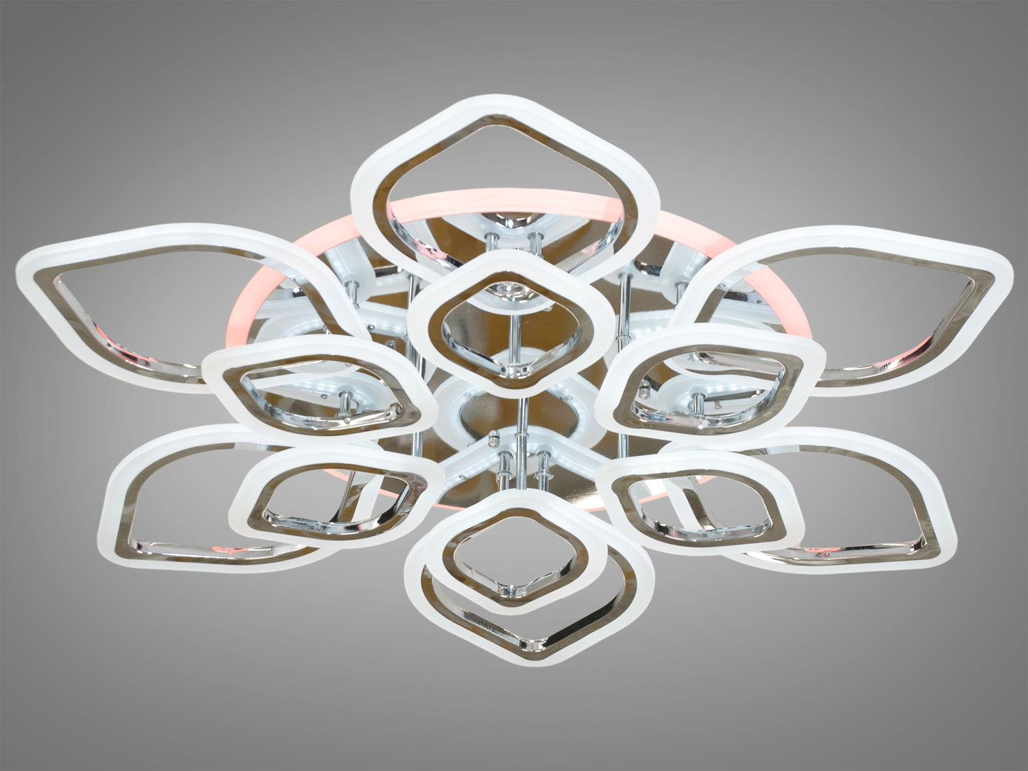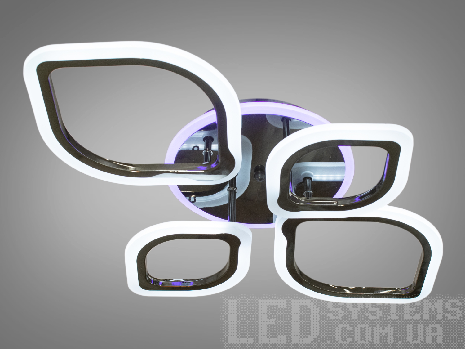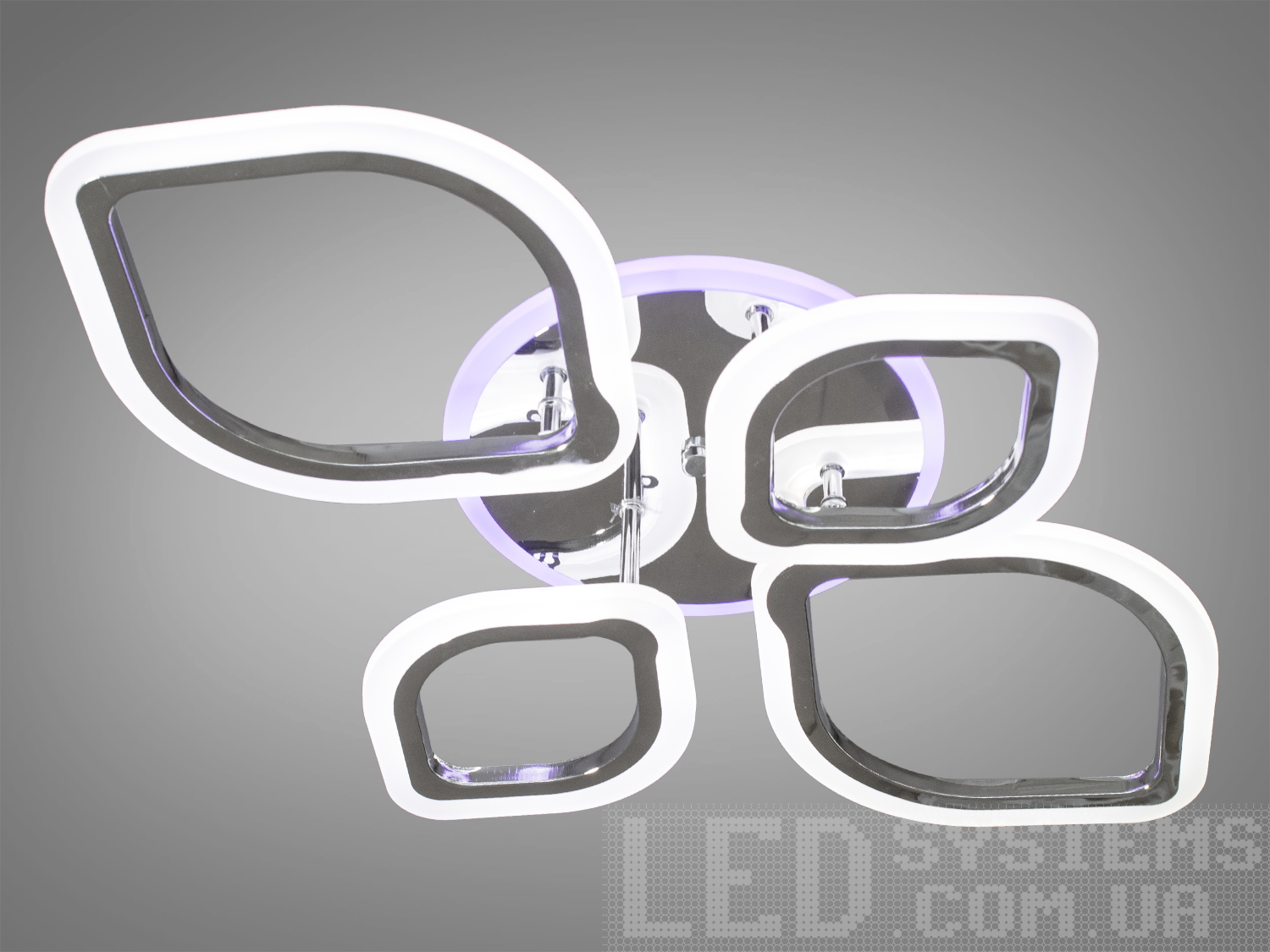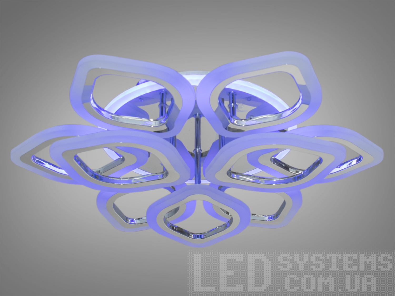 Яскрава світлодіодна люстра з LED підсвічуванням, колір хром, 120W на 17м2