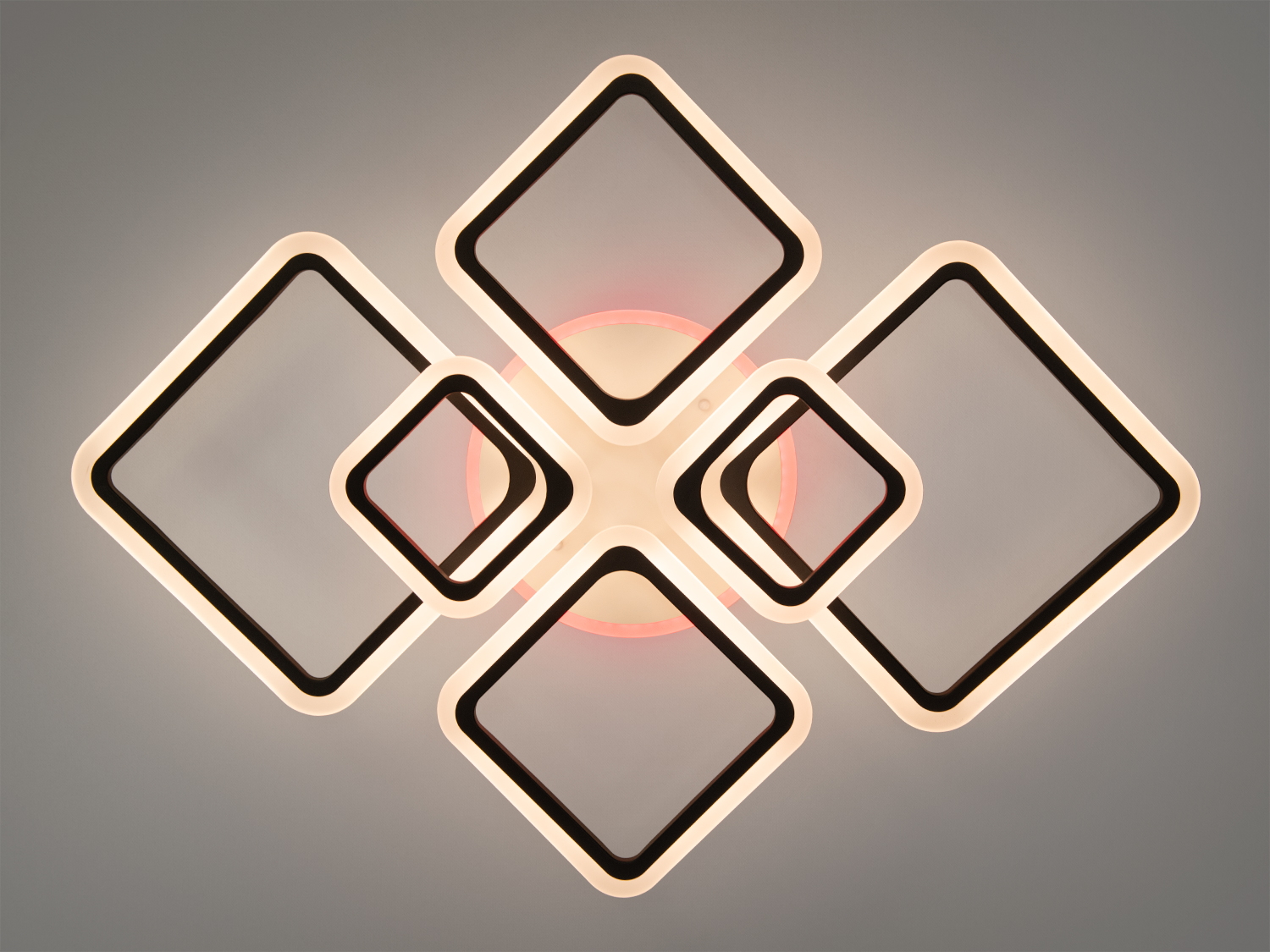 Світлодіодна люстра має кілька режимів: холодний 6000К, нейтральний 4100К, теплий 3200К, включення-вимикання, кольорове підсвічування, змішаний режим. Люстра має електронний димер, що дозволяє регулювати яскравість люстри від 5% до 100% за допомогою пульта, що входить до комплекту.