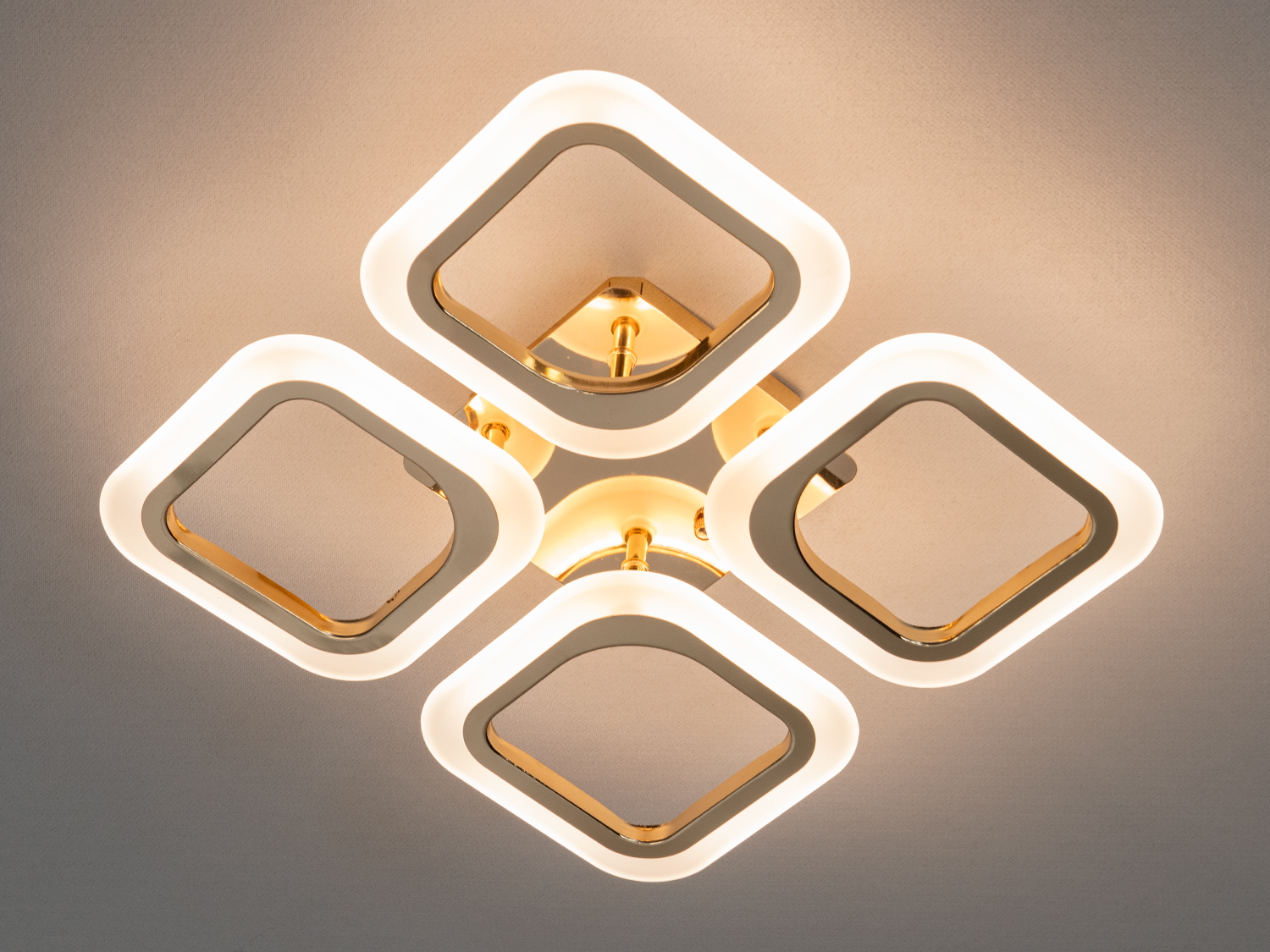 Квадратна LED люстра в кабінет з пультом, золото, 40W на 6м2