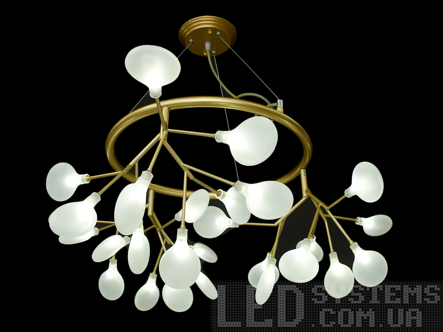 Лаконічна світлодіодна люстра в спальню має строгу основу, що надає їй класичного шарму, одночасно зберігаючи сучасний аспект дизайну. Плафони різного розміру розміщені на металевих утримувачах різної довжини, створюючи асиметричну, але збалансовану композицію. Міцні акрилові розсіювачі надають м'яке та приємне освітлення, а потужність у 30W гарантує ефективність та економію енергії. Колірна температура 4100 К створює приємне нейтральне світло, яке не втомлює зір і оптимальне для багатьох просторів. Розміри люстри шириною 80 см і висотою 55 см роблять її домінуючим елементом в інтер'єрі, але не перевантажують простір.Завдяки своїй універсальності ця люстра може бути використана не тільки в житлових приміщеннях, але і в комерційних інтер'єрах, таких як ресторани, готелі або офіси, що ідеально впишеться в сучасні будинки, квартири, кафе, арт-простори, коворкінги, квеструми.Кріпиться до стель будь-якого типу універсальним кріпленням-на монтажну планку.