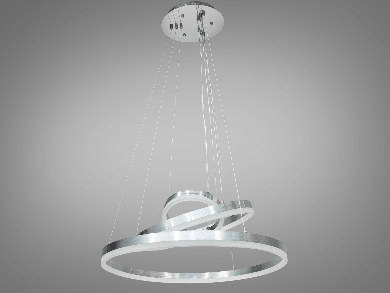 Модель D8174-800+600+400GDIM-LS — це підвісна LED-люстра з трьома кільцями, які перетинаються та утворюють динамічну композицію. Золоте покриття й матові розсіювачі створюють м’який суцільний контур світла без «гарячих» точок. Потужність 160 Вт передбачає достатній запас яскравості для віталень, студійних просторів, холів або переговорних. Конструкція підвішується на тонких тросах із можливістю регулювання висоти, що дозволяє налаштувати розміщення під конкретну кімнату або сценарій.