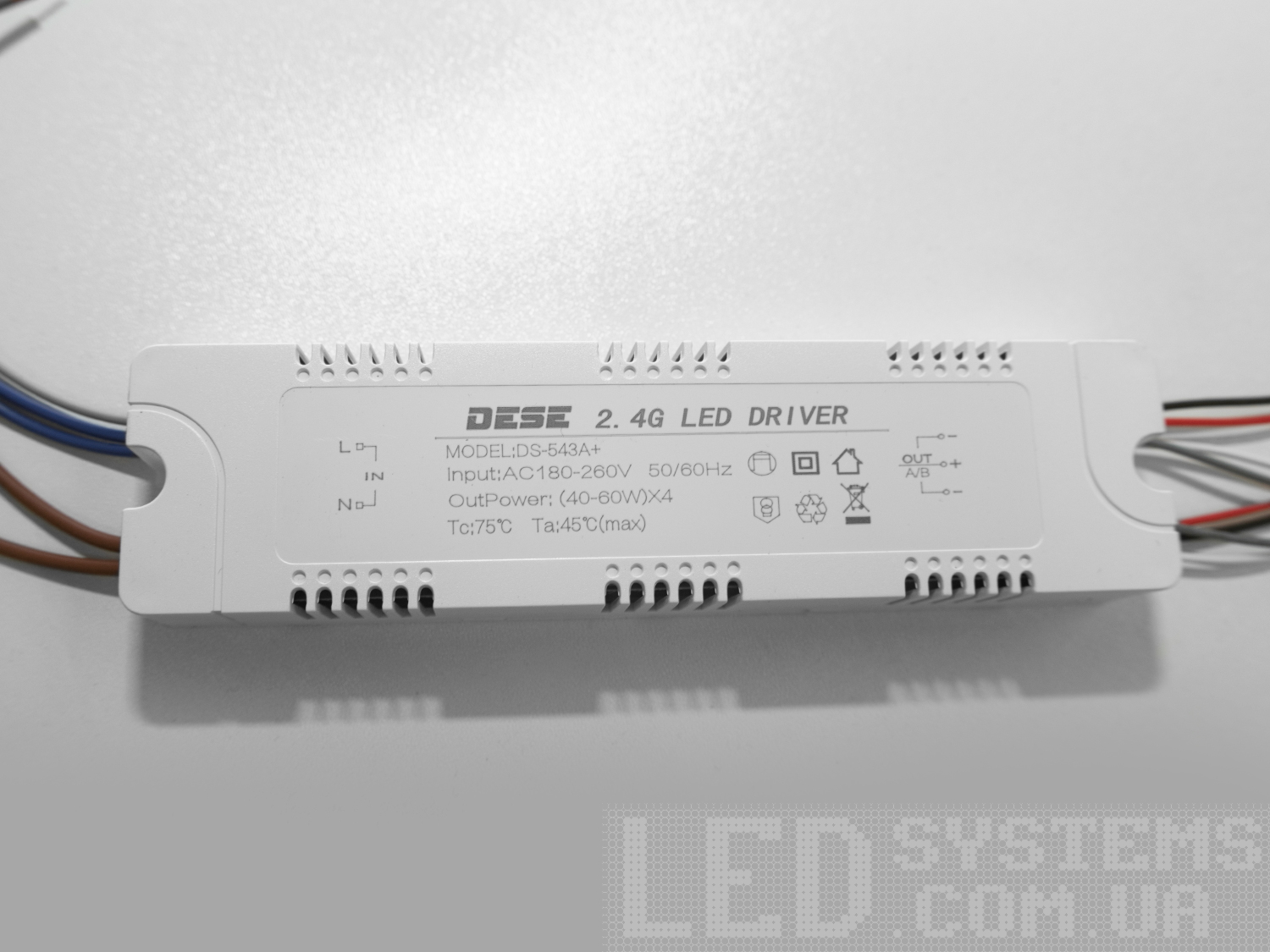 Блок приймача пульта встановлюється місце рідного блоку живлення світлодіодної люстри. Цей комплект може бути використаний на люстрах з робочим струмом світлодіодних модулів від 210 до 300 мА.
