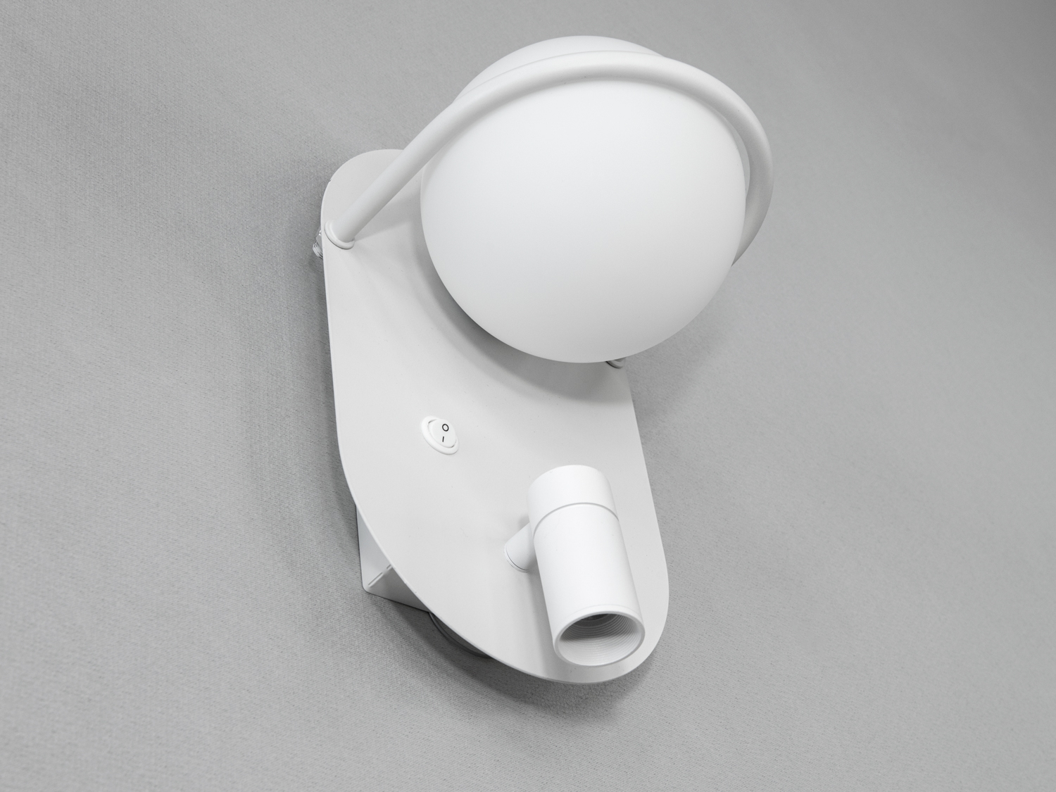 Світильник ідеально вписується в інтер'єр спальні, де біла матова сфера створює розслаблююче освітлення, а прожектор забезпечує направлене світло для читання. У вітальні воно стає стильним акцентом на стіні, додаючи характеру інтер'єру. У коридорі або холі цей світильник не лише освітлює простір, але й привертає увагу вишуканим дизайном.