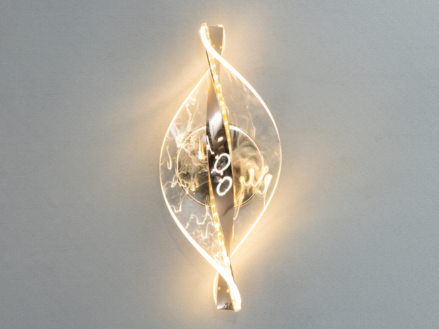 Оригінальний настінний LED світильник у спальню – це вишуканий світлодіодний світильник з потужністю 6 Вт стане стильним акцентом у будь-якому інтер'єрі. Його унікальна форма нагадує тонку, витончену завиту стрічку, яка плавно обрамляє м'яке світло. Основа світильника виконана з металу із золотим покриттям, що додає блиск і розкіш. Напівпрозорий декоративний елемент у вигляді скла з нанесеним на нього візерунком підкреслює легкість та легкість дизайну. Такий світильник стане не лише функціональним джерелом світла, а й справжнім витвором мистецтва.