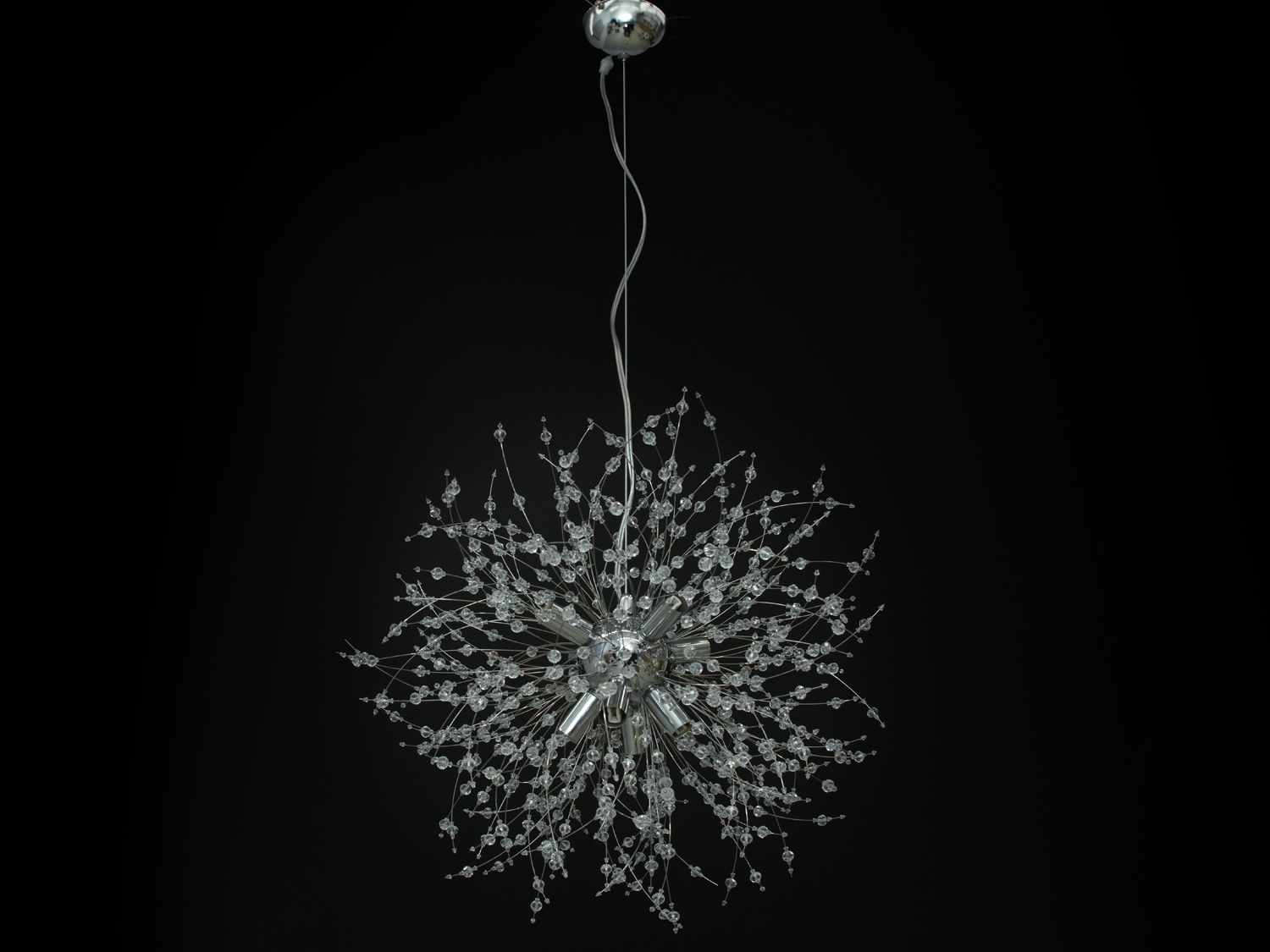 Сучасна кришталева люстра-підвіс "Кульбаба" на 12 ламп з основою хромового кольору, підходить для спальні, залу, вітальні, кухні. Люстра під галогенову або світлодіодну лампу, яка ідеально підійде для невеликих кімнат, і навіть для низьких стель. Кришталева люстра під звичайну лампочку із цоколем g9. Кріпиться до навісних, натяжних і звичайних стель універсальним кріпленням-на планку.