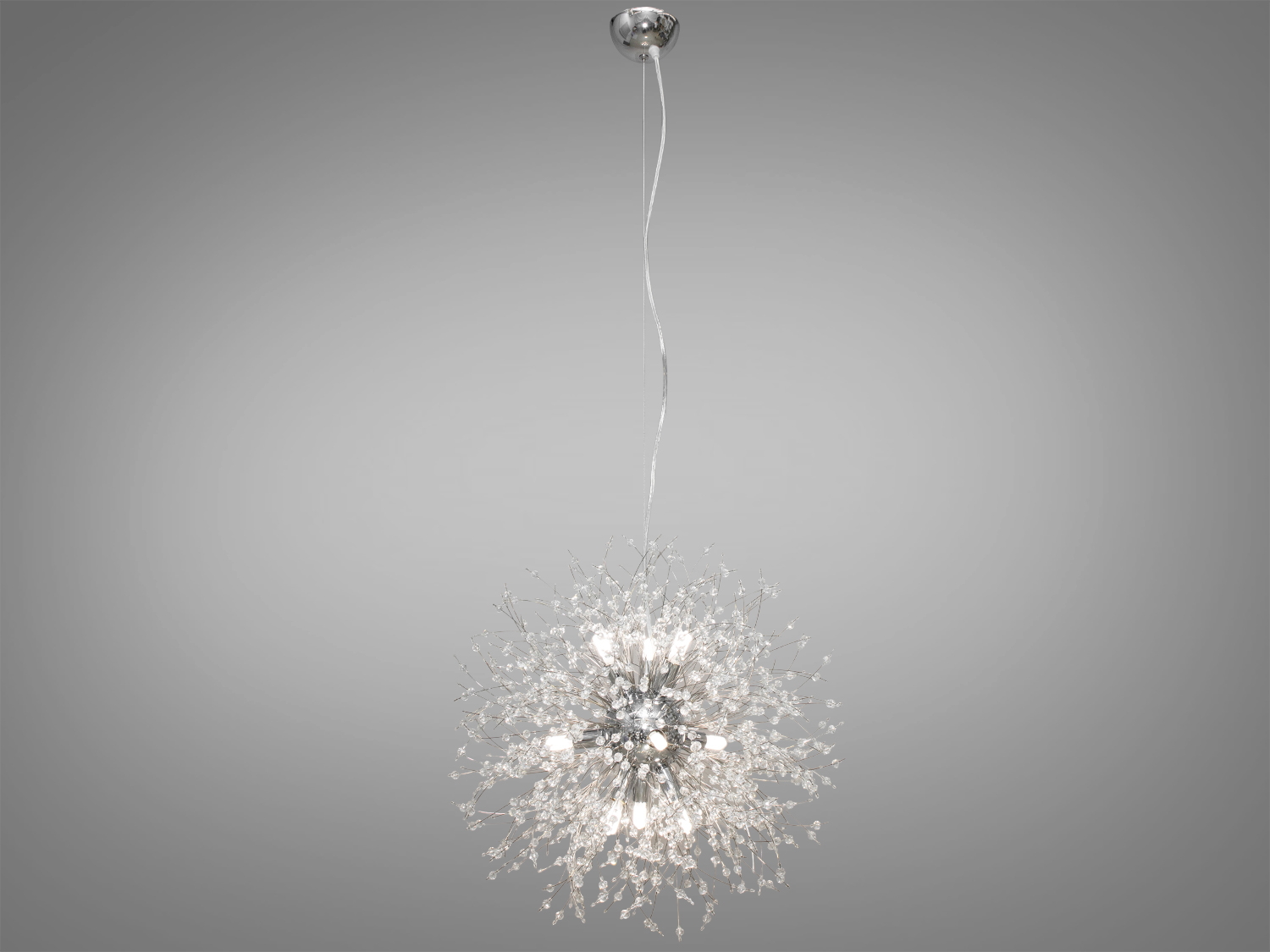 Сучасна кришталева люстра "Кульбаба", колір хром, на 12 ламп