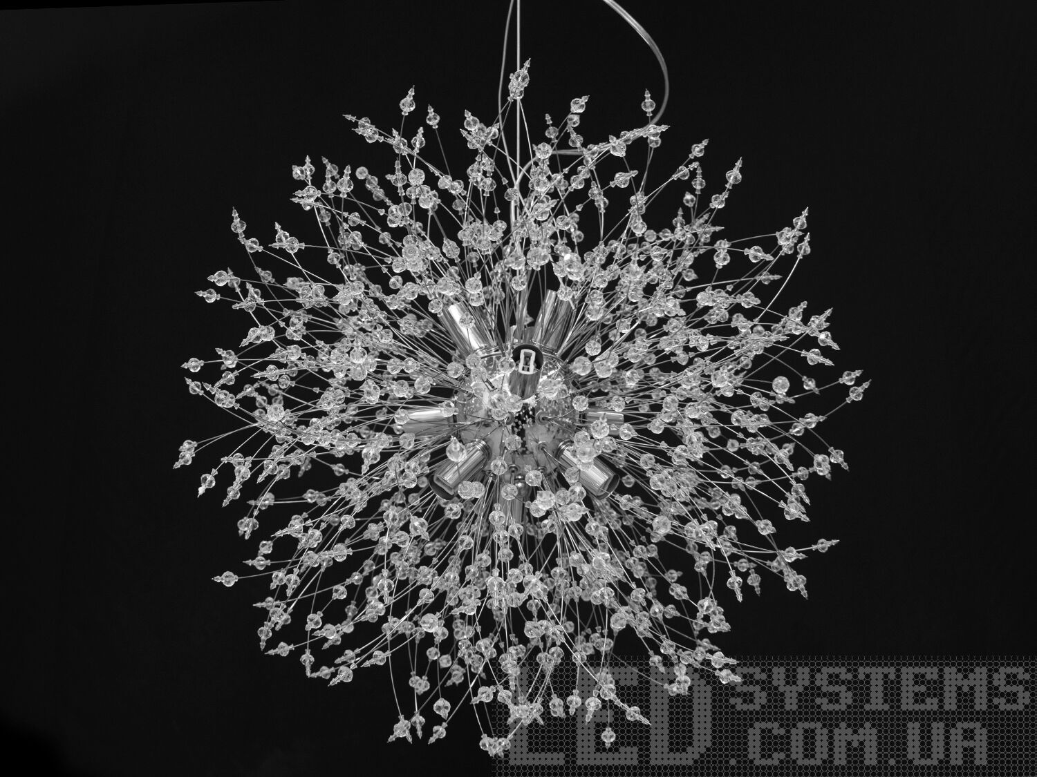 Сучасна кришталева люстра-підвіс "Кульбаба" на 9 ламп з основою золотого кольору, підходить для спальні, залу, вітальні, кухні. Люстра під галогенову або світлодіодну лампу, яка ідеально підійде для невеликих кімнат, і навіть для низьких стель. Кришталева люстра під звичайну лампочку із цоколем g9. Кріпиться до навісних, натяжних і звичайних стель універсальним кріпленням-на планку.