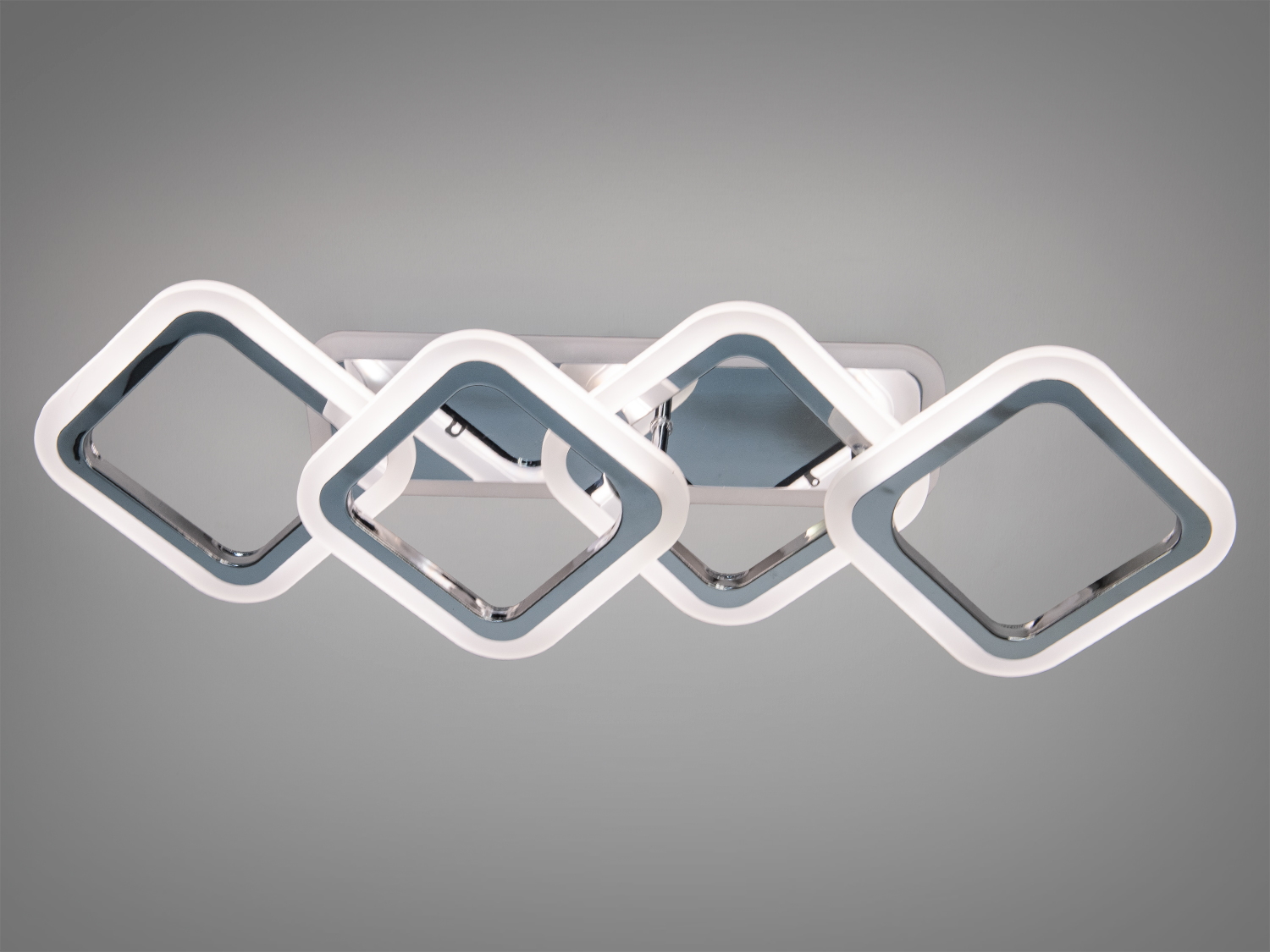 Люстра складається з чотирьох квадратних плафонів, що створюють естетичний і стильний вигляд. Золотистий колір підкреслює її розкіш, роблячи її ідеальним доповненням до сучасних інтер′єрів.
