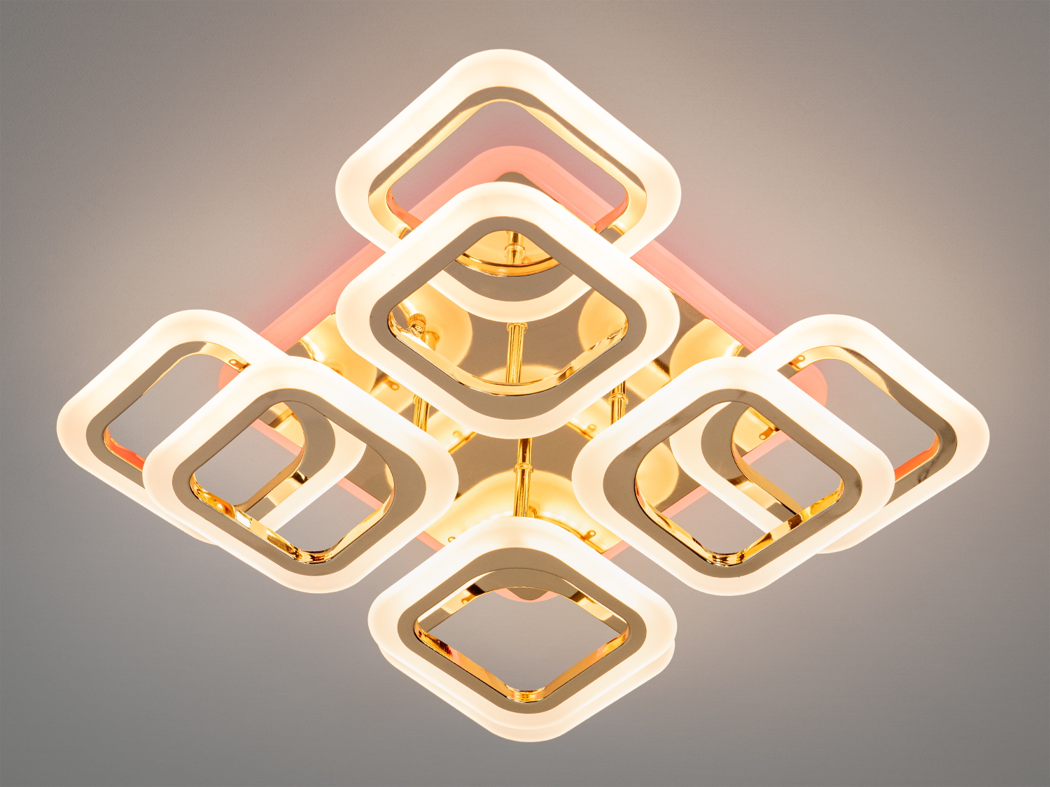 Стельова LED люстра квадратами з пультом, золото, 120W на 18м2